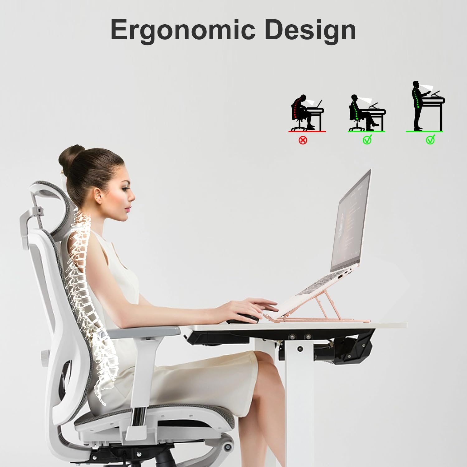 - DESIGN: The laptop holder elevates your notebook from 2.1” to 5.7” height for a perfect eye level, letting you fix posture and reduce your neck fatigue, back pain and eye strain.ergonomic design makes for easy watching and typing, relieving neck, shoulder and spinal pain.