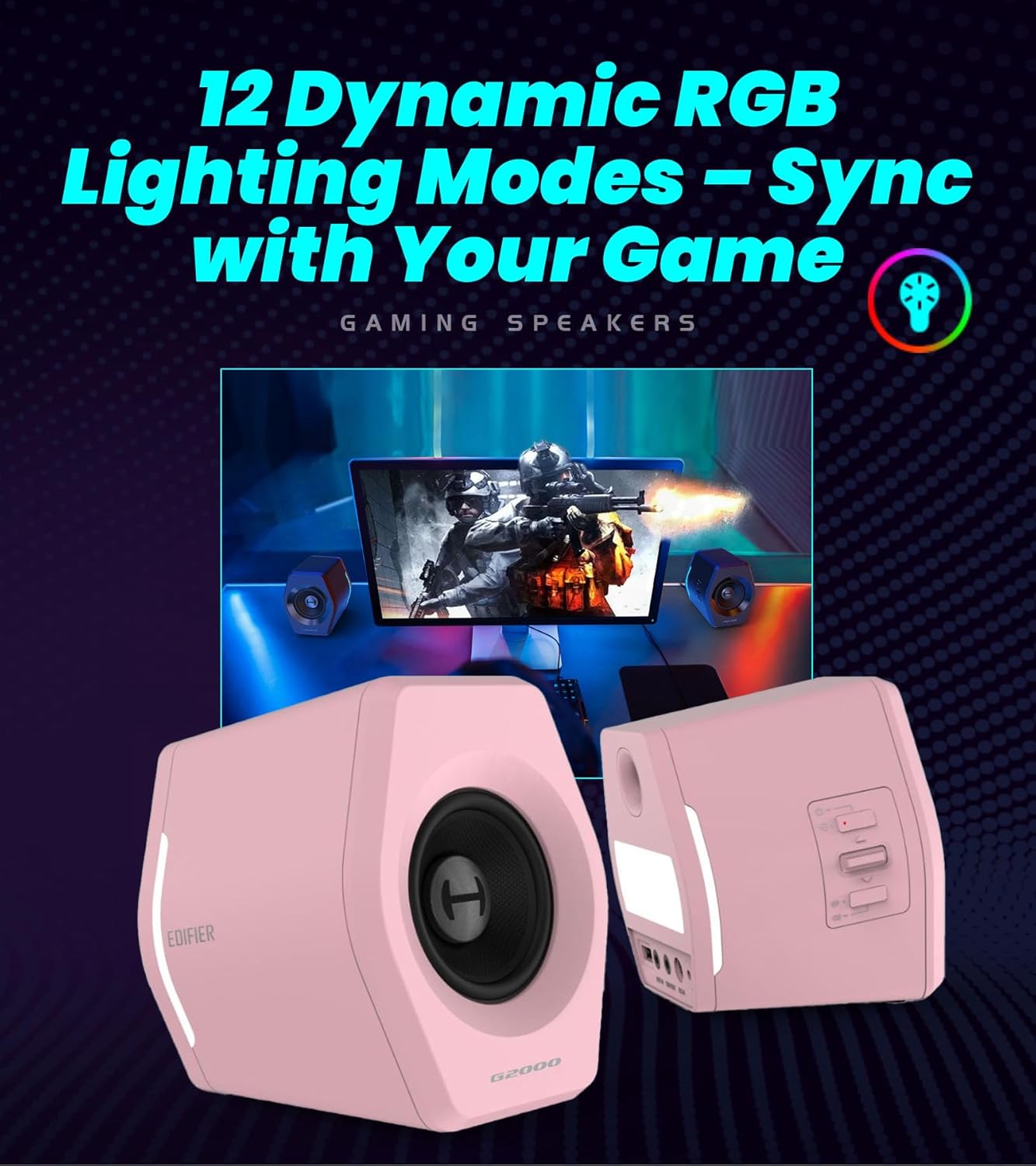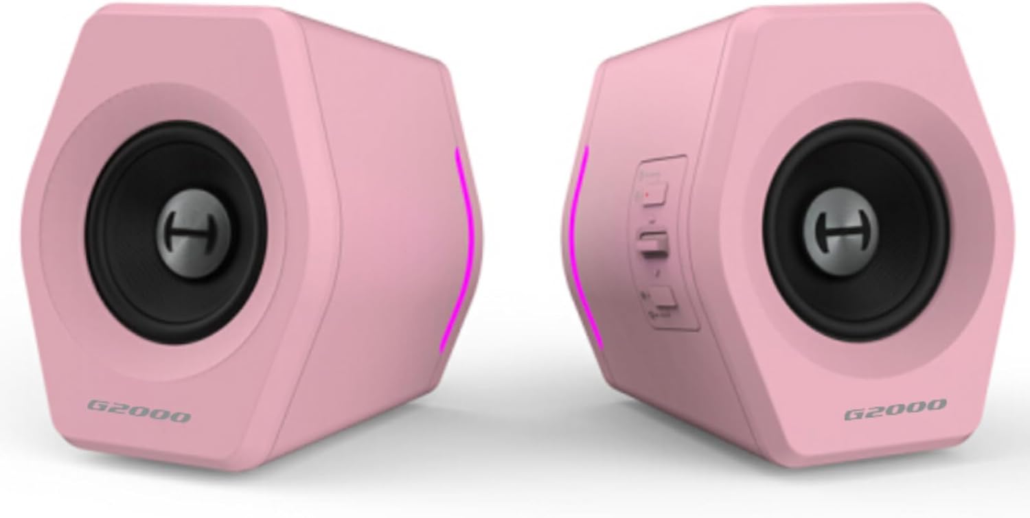Edifier Hecate RGB Gaming Speakers, 32W Peak Power, Bluetooth 5.1, Game/Movie/Music Modes, 12 RGB Lighting Effects, Compact Design for PC/PS4/Desktop - Pink