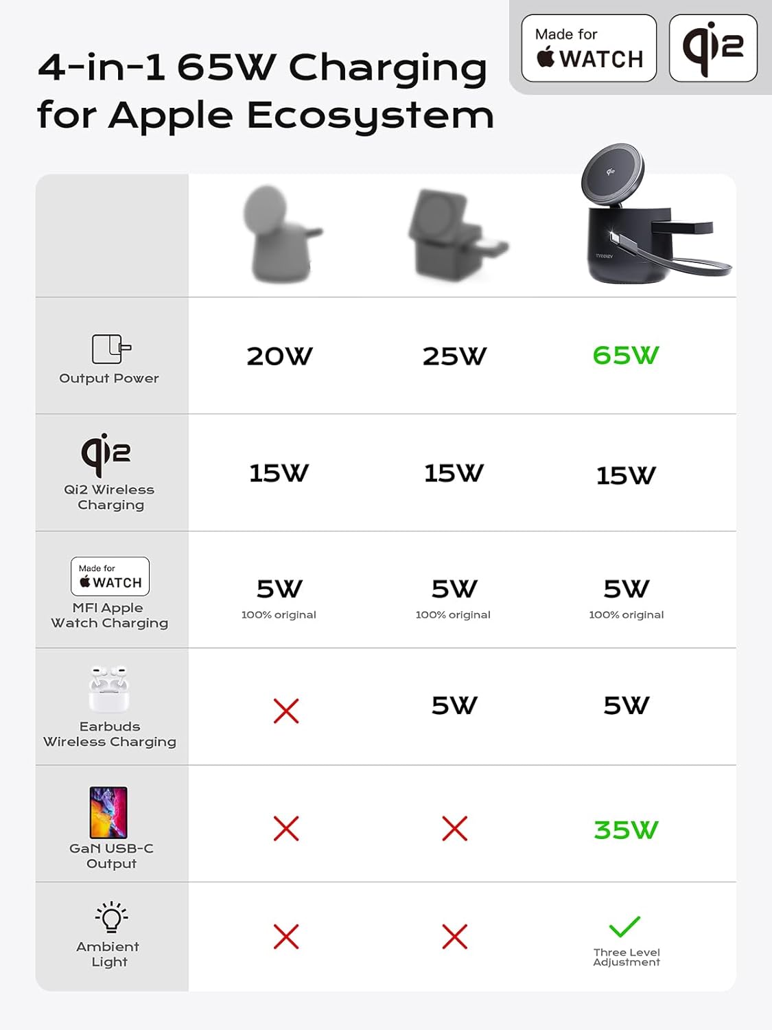 - Special Feature : 65W PD Adapter with 5ft Braided Cable included, Advanced AI Intelligent Chips Control Core,Skin-friendly Touch, Distinctively Elegant Design, Exclusive 3FT Retractable Cord & Relaxing Ambient Light, Magsafe Compatible & Made for Apple Watch, Qi2 Certified 15W Wireless Fast Charging 65W PD Adapter with 5ft Braided Cable included, Advanced AI Intelligent Chips Control Core,Skin-friendly Touch, Distinctively Elegant Design, Exclusive 3FT Retractable Cor… See more