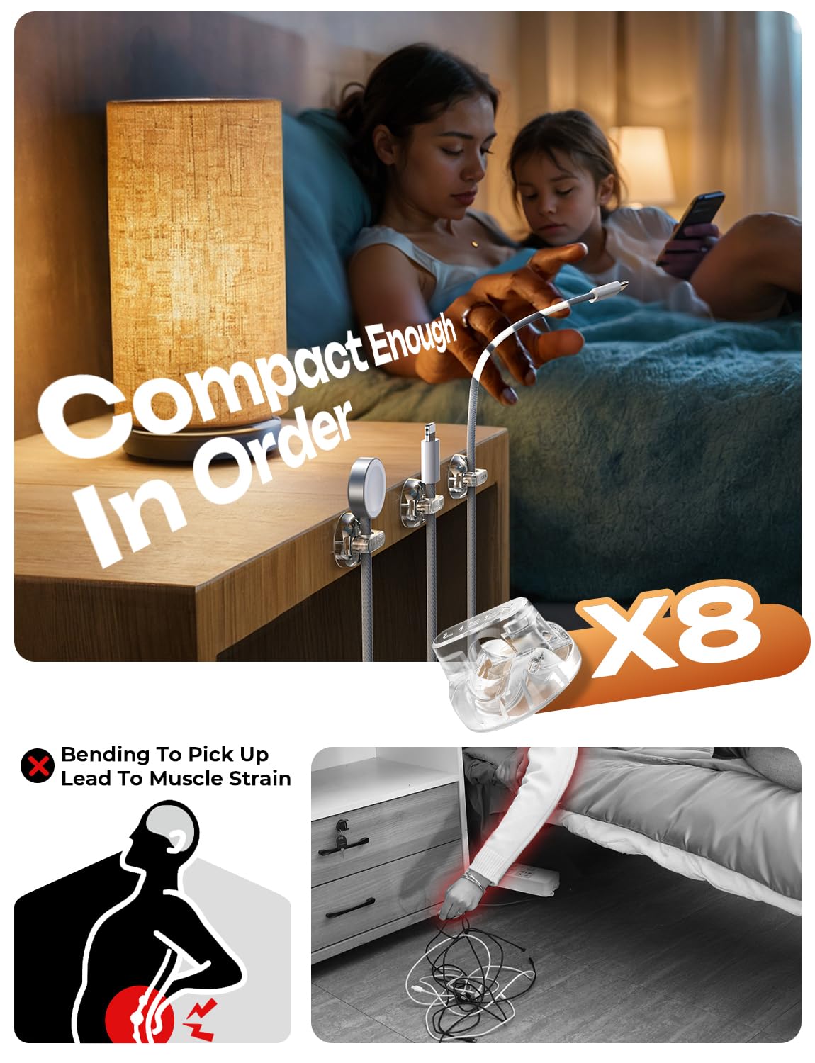 - Perfect Slot Size for Wide Cable Compatibility: With a 0.27-inch (7mm) slot diameter, this versatile cord holders for nightstand, also referred to as desk cable clips, works perfectly with phone chargers, USB cords, HDMI cables, power cords, and slim cables like the iPhone silicone charging cord. Enjoy smooth cable pulling and a clutter-free space