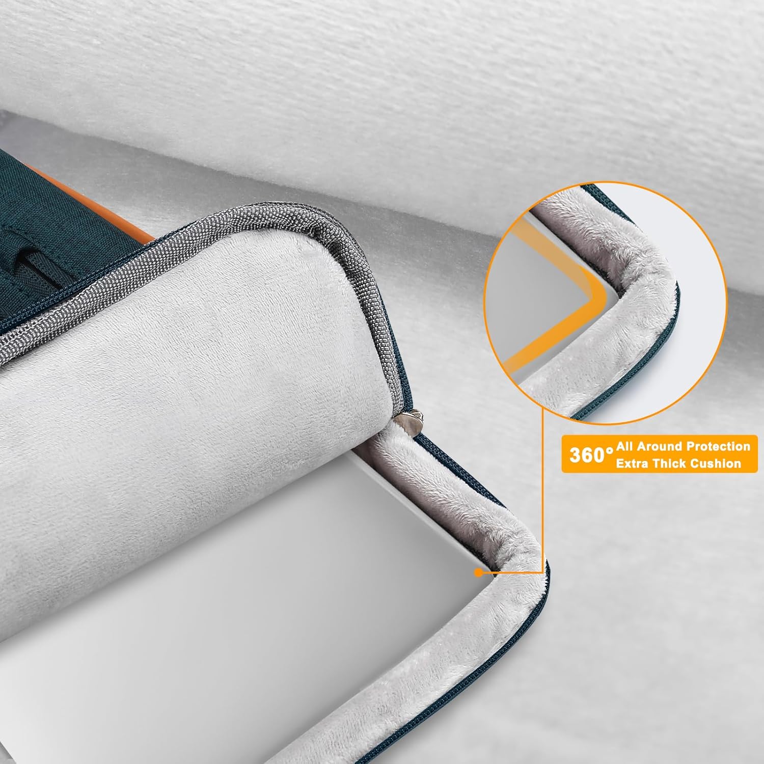 - The laptop sleeve with organizer pockets outer polyester fabric of the case enable you to carry your laptop / notebook / Ultrabook computer in a uniquely sleek style. Features a polyester foam padding layer and fluffy cushion for bump and shock absorption and protection of your device against dust, dirt, bump, shock and accidental scratches.