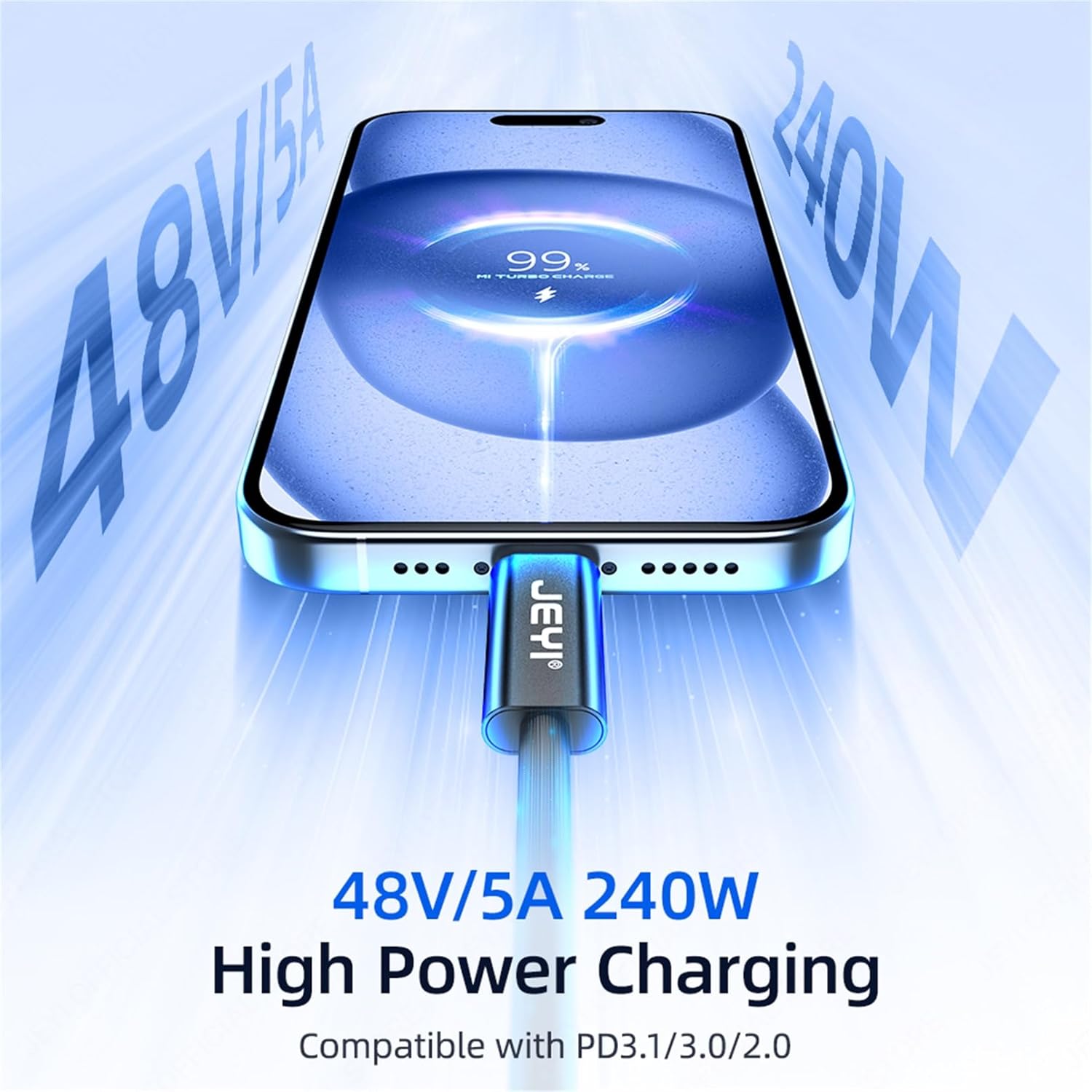 JEYI Thunderbolt 5 Cable 1m/3.3ft 80Gbps,120Gbps Bandwidth 16K/Dual8K,Multi-Screen Display,240W Fast Charging TB5,USB4/3/2,for iPhone 15/16,MacBook Pro/MacBook Air M3/iMac,Dell XPS 13/15(5-Certified)