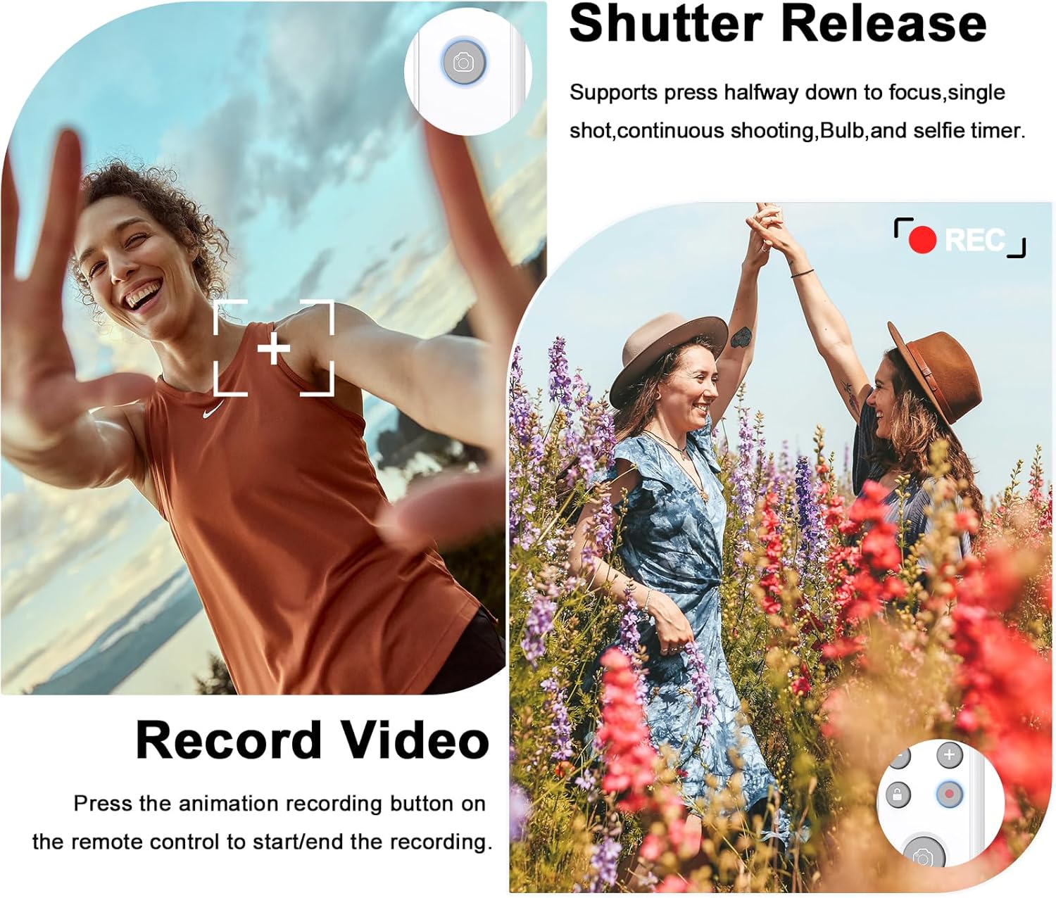 - Shooting still photos and videos: This remote control supports shooting still photos, short videos, Bulb shooting, continuous shooting, self timer, 360 ° all-round remote control, with a remote control distance of up to 10m/32.8 feet. Please adjust the camera to the corresponding mode.