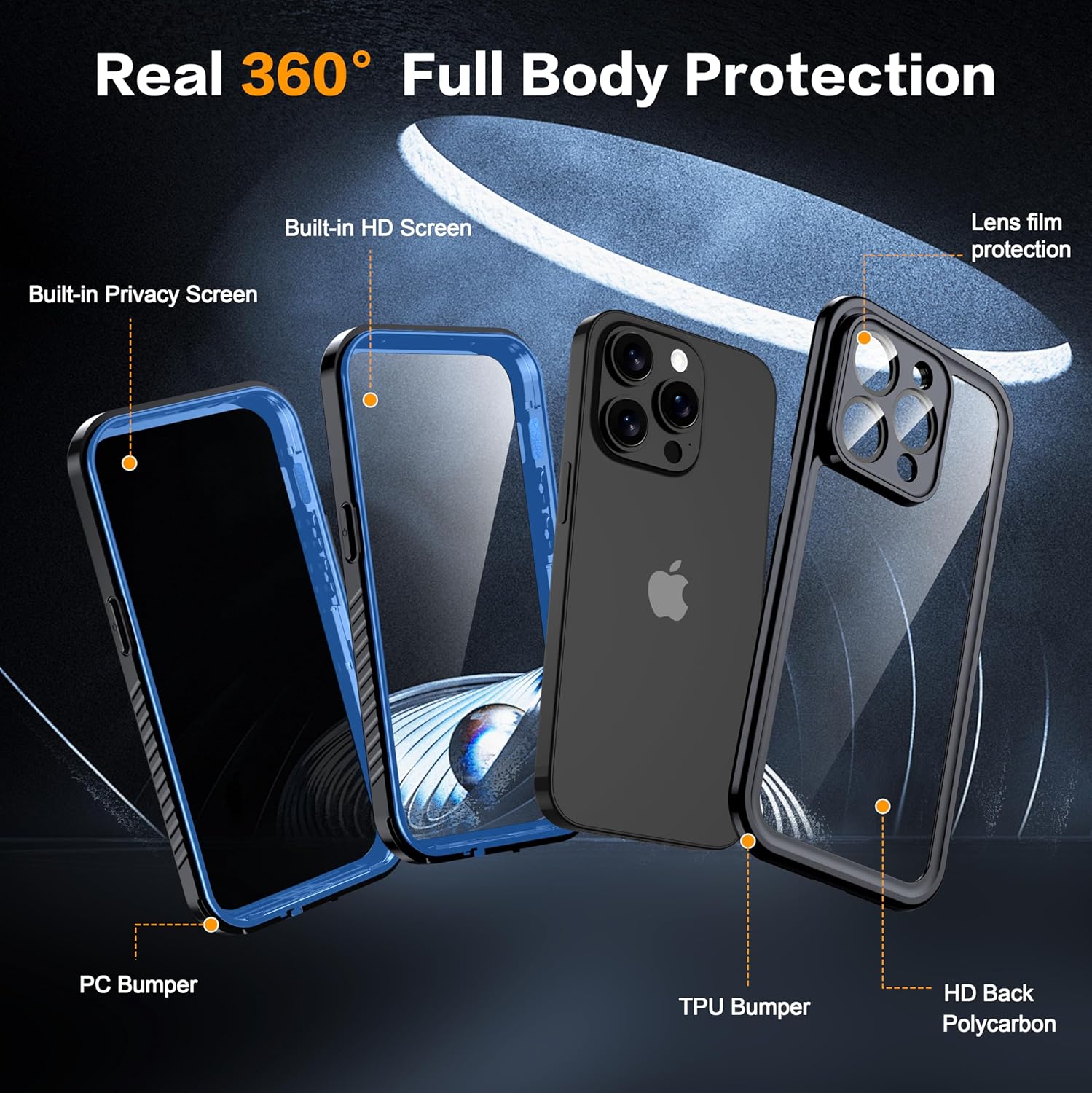 - 【360°Military Protection】The iPhone 14 Pro waterproof case is MIL-STD drop tested and survives drops from up to 14 FT. Two layers and bumper raised frame provide 360 degree rugged complete protection, protect your phone from bumps, dust, dirt and snow, easy to deal with everyday drop accidents.