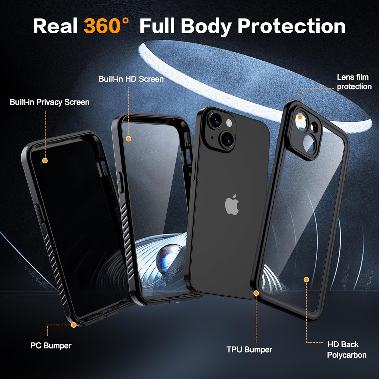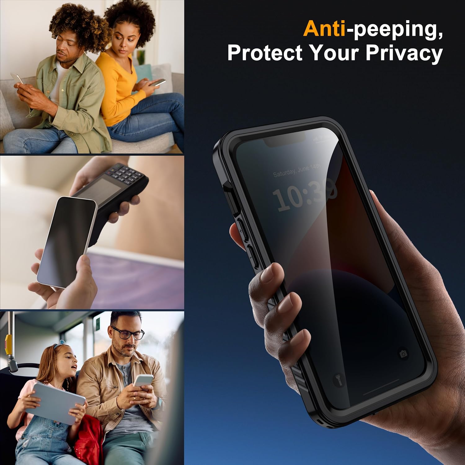 - 【Built-in Privacy Protector & HD Screen】Double front frame design, this iphone 14 case features a dual front frame design (HD & Privacy) comes with HD screen protector and privacy screen protector to protect your phone screen and personal privacy anytime, anywhere. The built-in front cover provides excellent protection for the phone, maintaining the original screen sensitivity while preventing damage caused by scratches and impacts, without affecting the touching sensitivity and photo clarity.