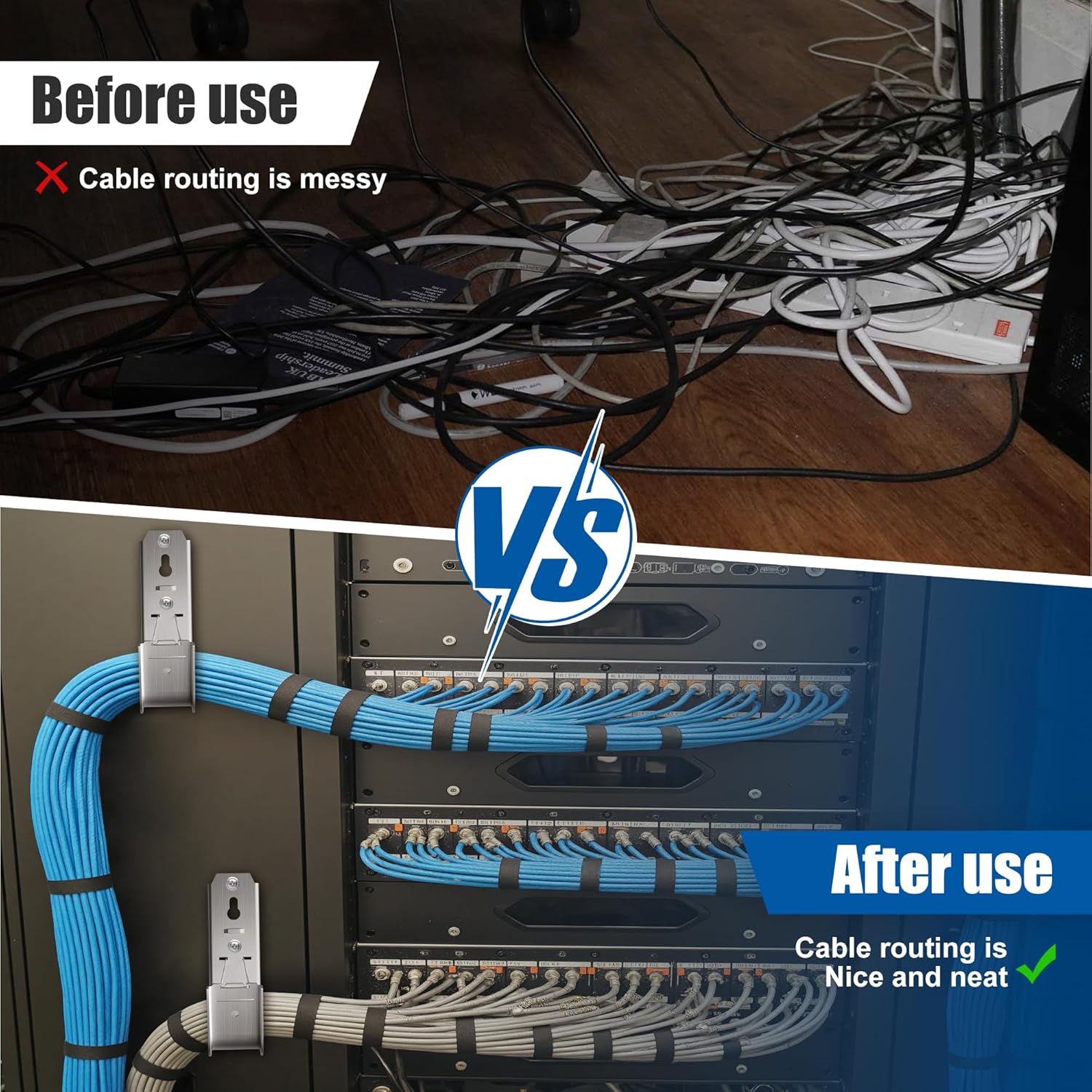 - Reinforced design: Each J-hook is equipped with a retaining clip to hold the cable in place and prevent the cable from slipping out of the J-hook, and the cable hooks have built-in cable anchors to allow the user to use cable ties to further secure the cable, providing additional security and stable support for your cable routing.