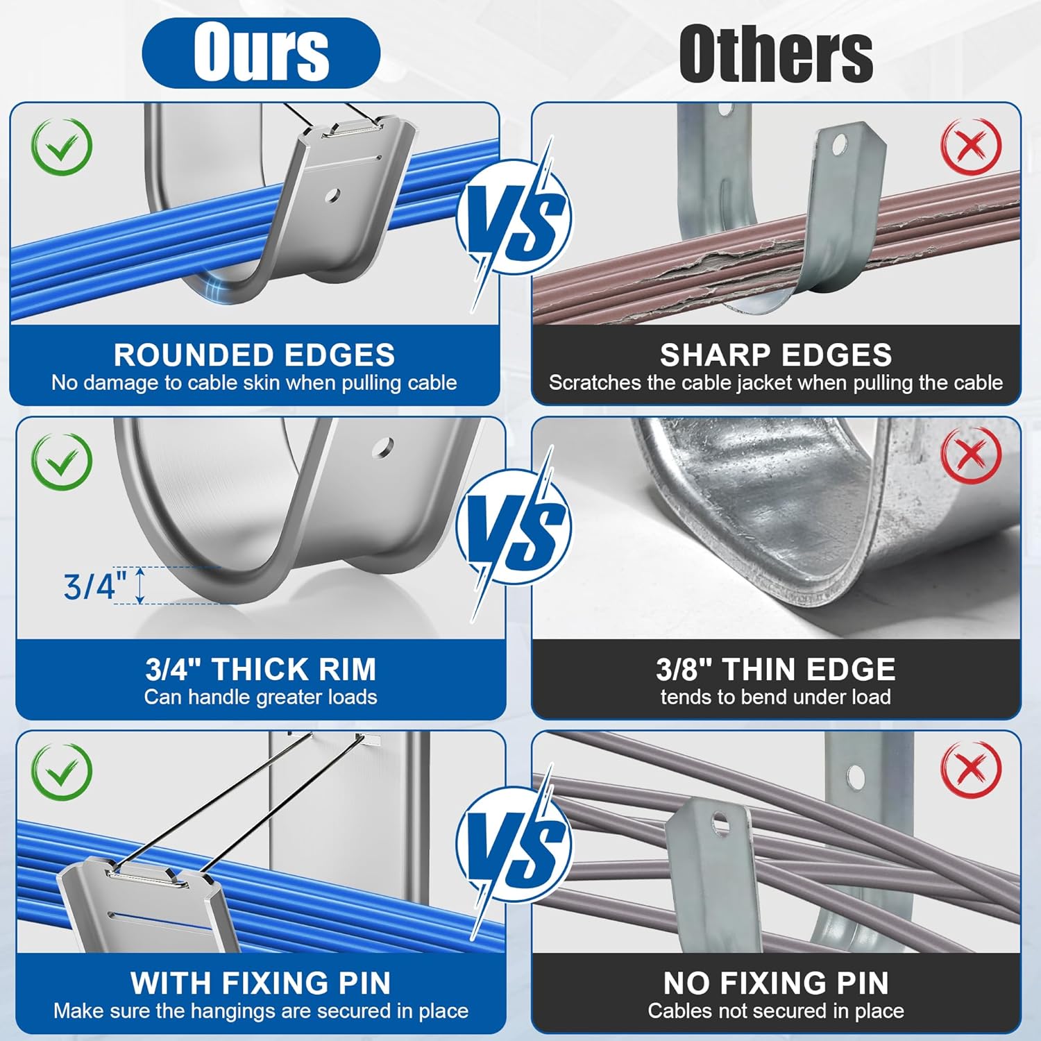 - Wide Application:Our J-hooks are suitable for most low-voltage data cable installations, J-hooks match perfectly with coaxial cables, fiber optics and conduits, CAT5e, CAT6, CAT6a, CAT7 and more. The cable management hooks are well made to efficiently organize cords, light fixtures, or any wire that needs to be neatly organized.