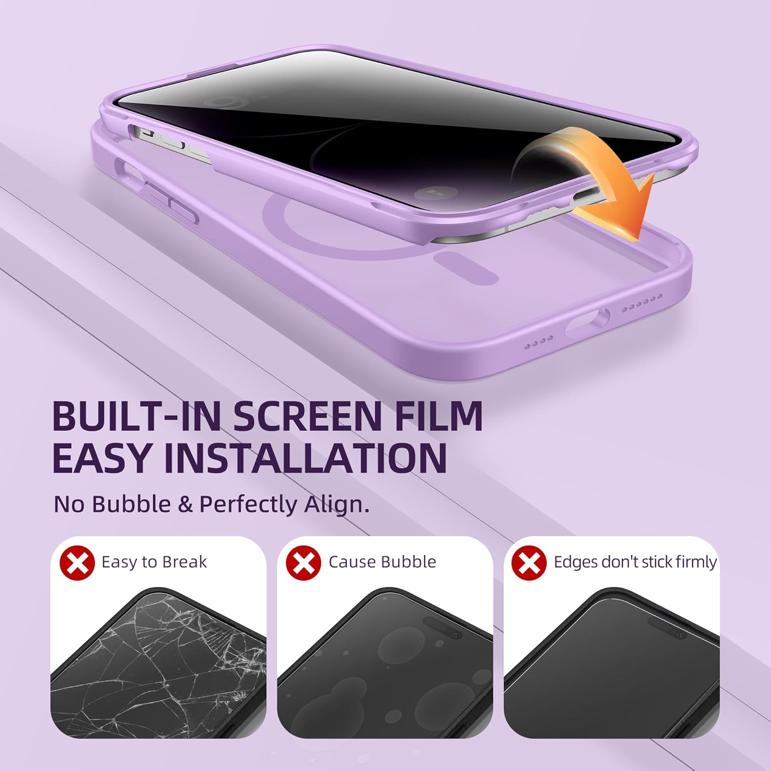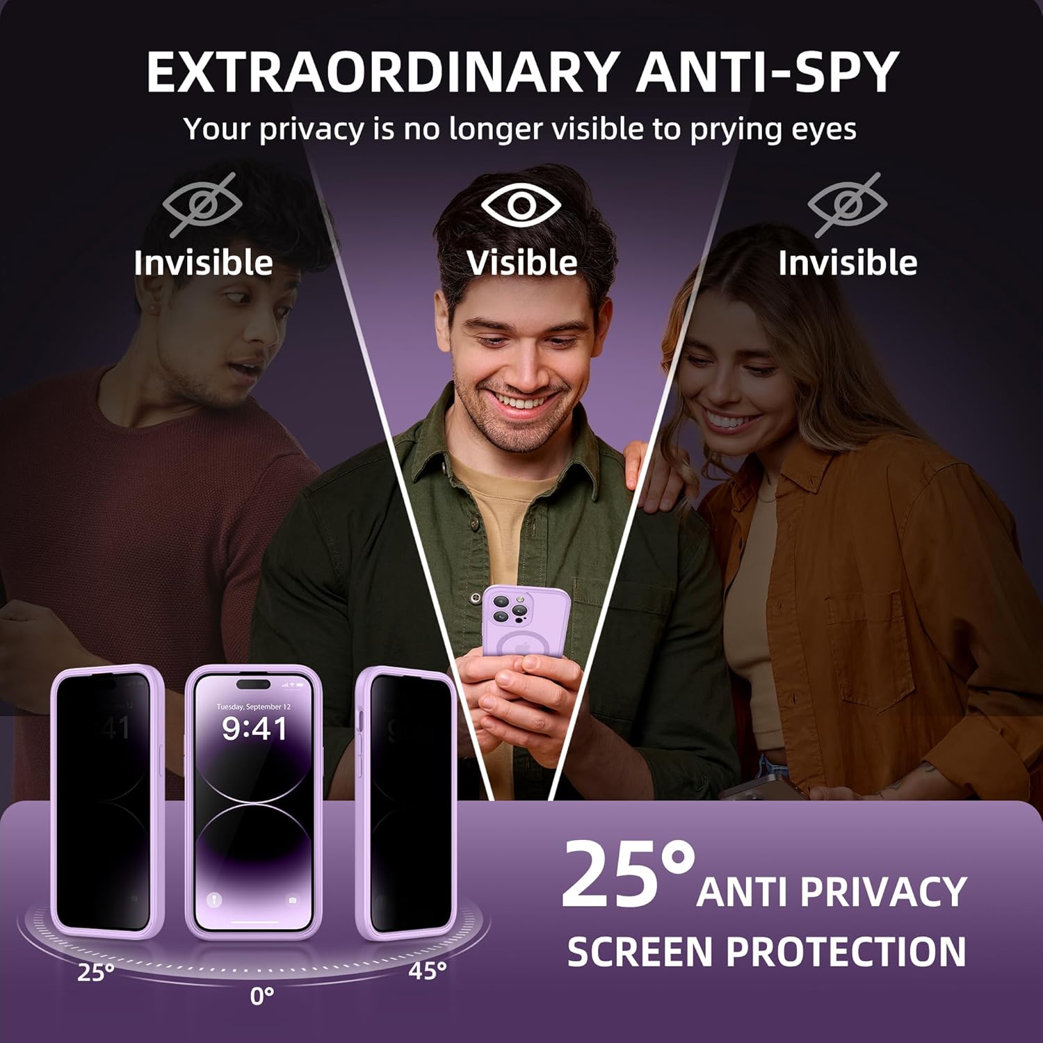 BERFY Magnetic for iPhone 14 Pro Max Case,Compatible with MagSafe,Built-in Privacy Screen Protector and Upgraded Camera Protection,Anti-Spy Full Body Shockproof Phone Case for 14 Pro Max, Light Purple