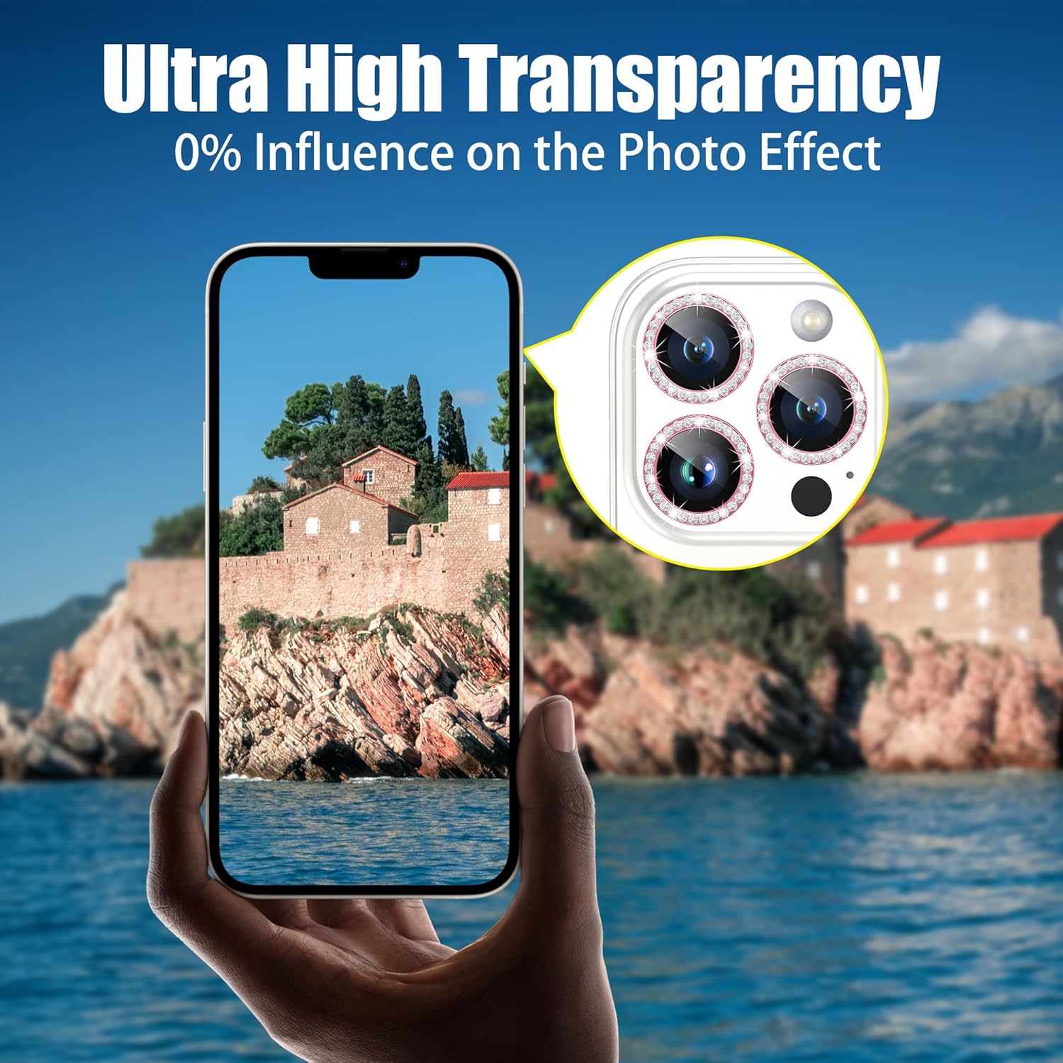 - ⭕[Two Bling Effects] There are 3 bling diamond rings and 3 bling glitter rings in the package. Free to match according to your own personal preferences. These rings glass are optical grade, protect your iPhone 15 Pro / 15 Pro Max camera lens from damage and scratches and has no effect on taking photos. Fully high transmittance sapphire glass with AR anti-reflection function: Camera anti-fall protection and Bling Bling Effect and Fully restored image quality.