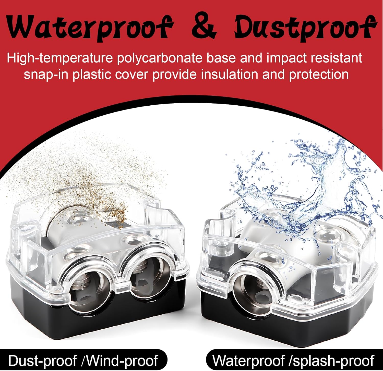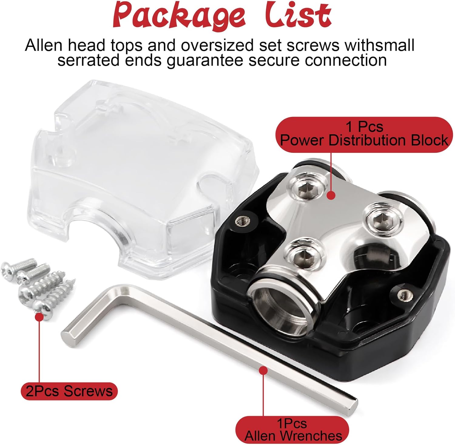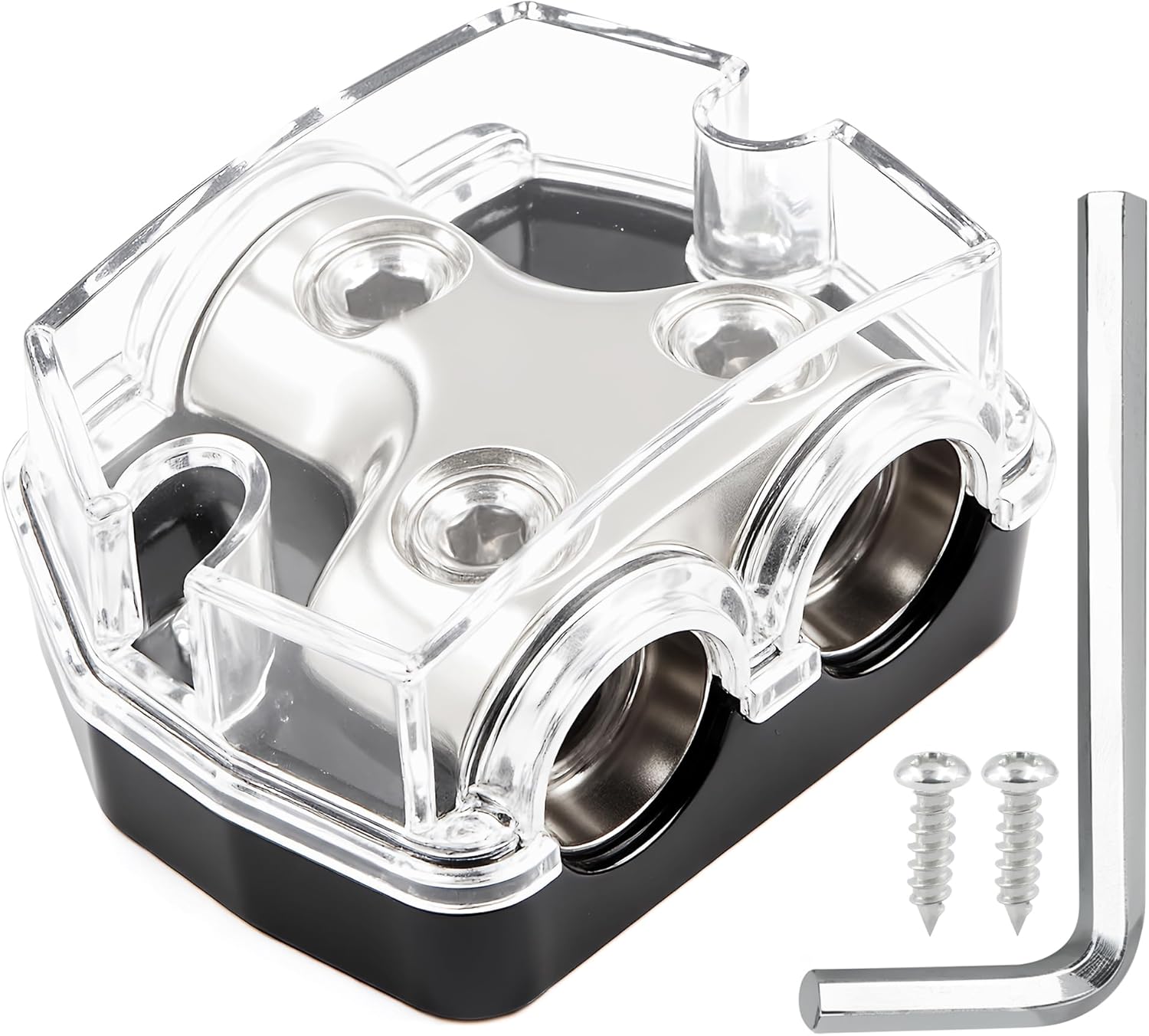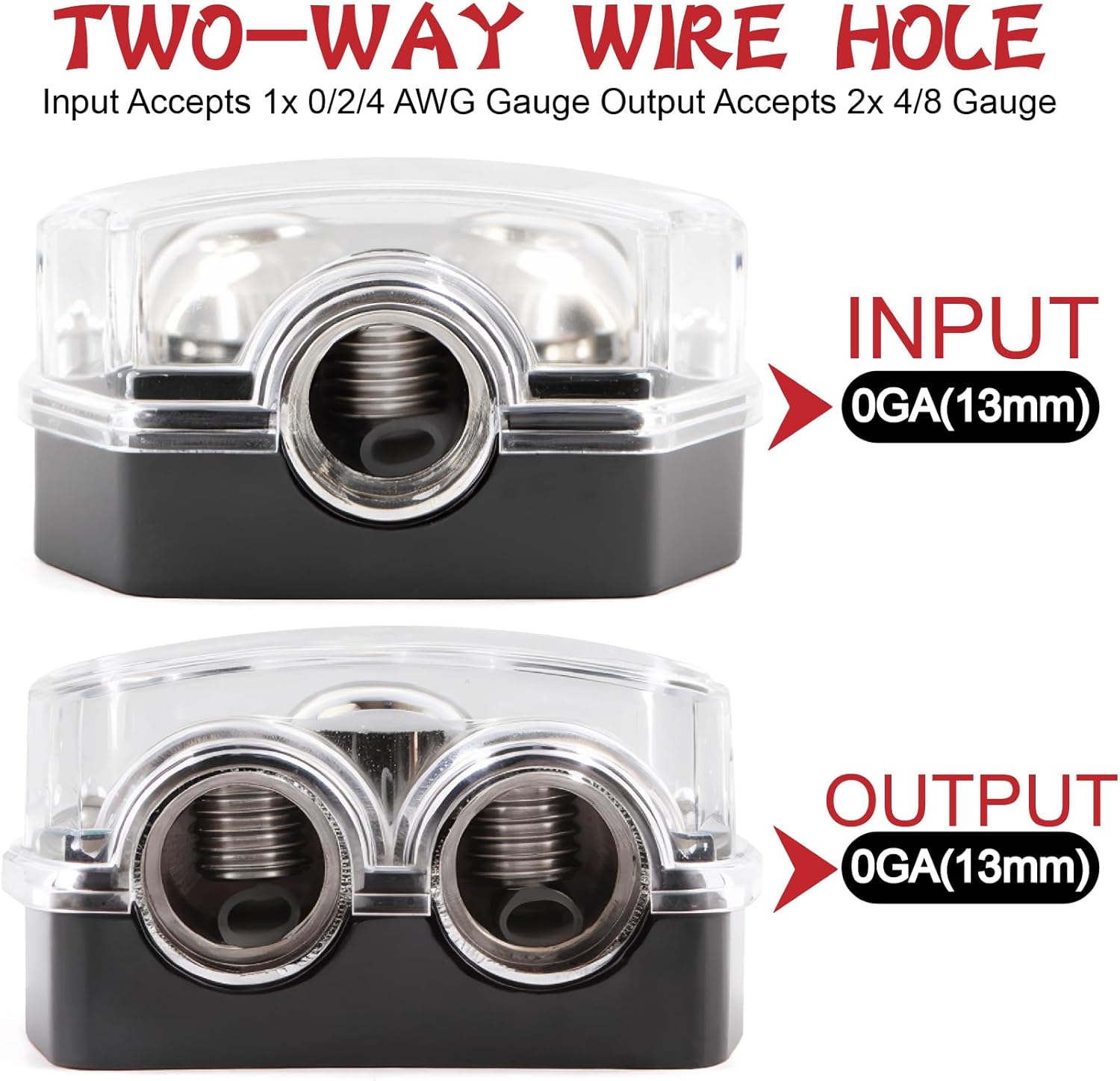 2 Way Power Distribution Block 1x 0 GA in 2X 0 GA Out Circuit Protector Distribution Connecting Blocks for Car Audio Splitter,1Pc with Installation Kit