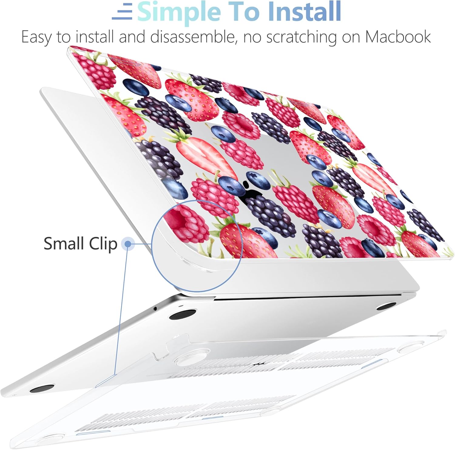 - Design Features of Case: The bottom case is designed with vents for maximum heat dissipation. The bottom case has non-slip feet to avoid slipping during use. The precise cutting design allows you to access all the ports of your MacBook. For Macbook air 2022 case is easy to install and remove