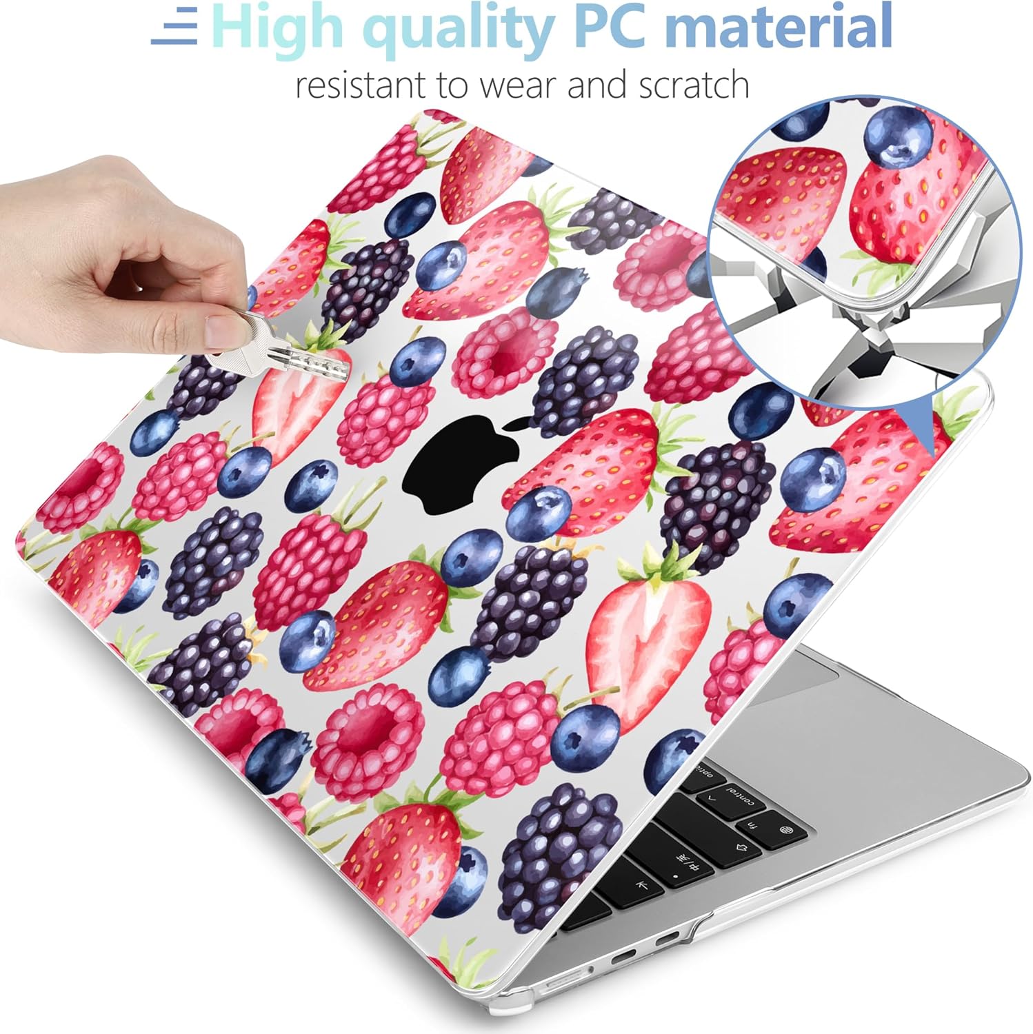 MEEgoodo Case for M4/M3/M2 MacBook Air 13.6 inch Case 2025 2024 2022, Fit Model A3240/A3113/A2681, Laptop Hard Shell with Keyboard Cover Compatible with MacBook Air 13 inch, Fresh Berries Pattern