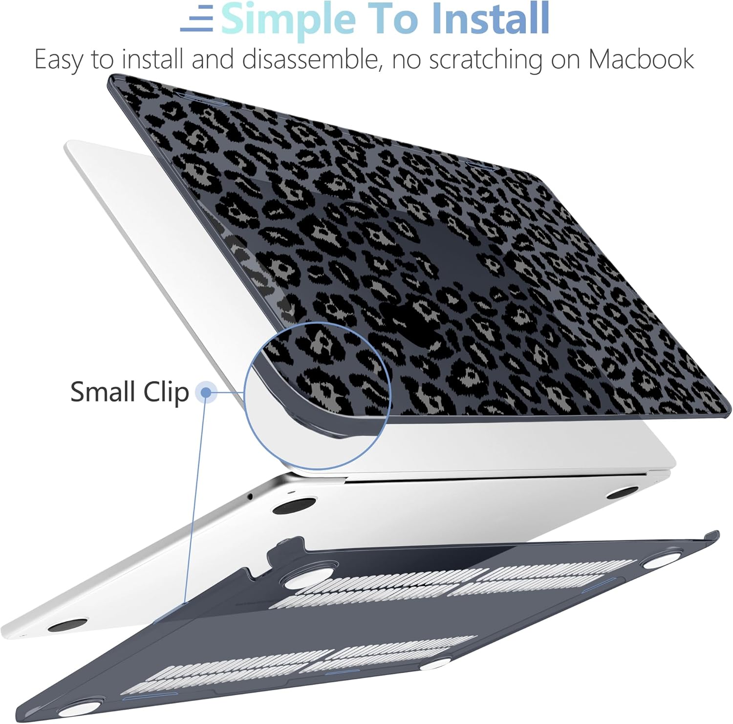 MEEgoodo Case for M4/M3/M2 MacBook Air 13.6 inch Case 2025 2024 2022, Fit Model A3240/A3113/A2681, Laptop Hard Shell with Keyboard Cover Compatible with MacBook Air 13 inch, Snow Leopard Texture