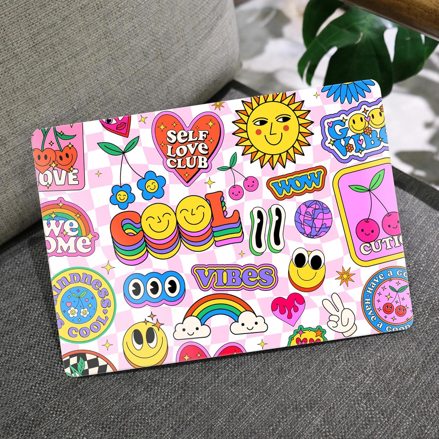 MEEgoodo for MacBook Air 13.3 inch Case 2021 2020 2019 2018 A2337 M1 A2179 A1932, Laptop Shell for MacBook Air M1 with Keyboard Webcam Cover & Trackpad Film & Type C Adapter,Pattern Stickers