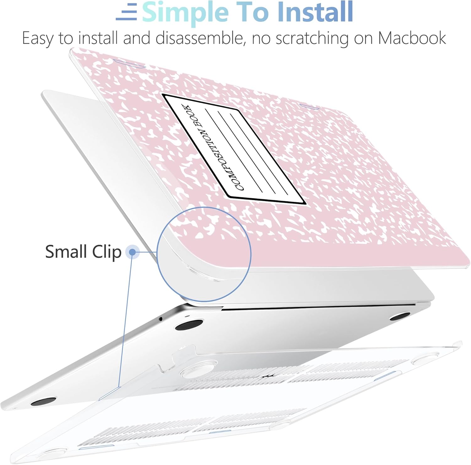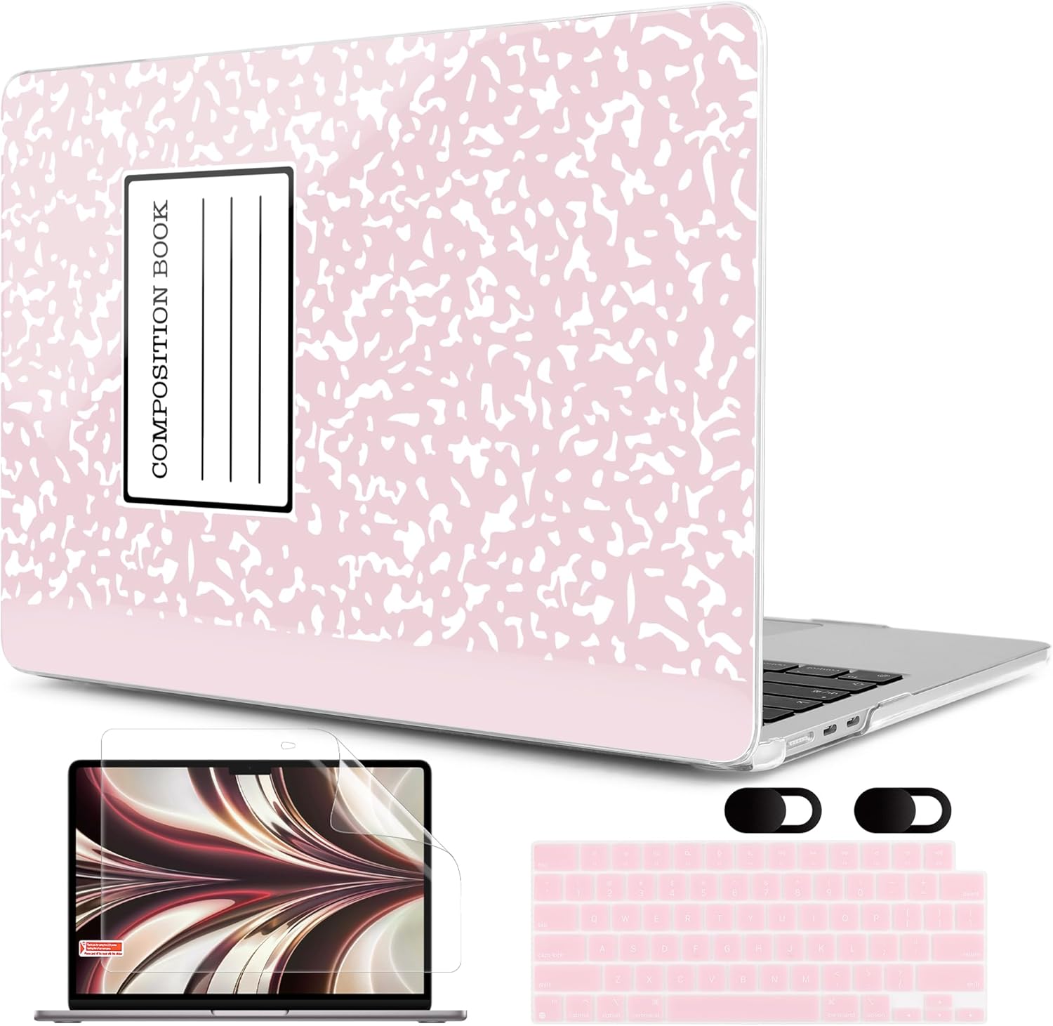 MEEgoodo Case for M4/M3/M2 MacBook Air 13.6 inch Case 2025 2024 2022, Fit Model A3240/A3113/A2681, Laptop Hard Shell with Keyboard Cover Compatible with MacBook Air 13 inch, Pink Composition Book