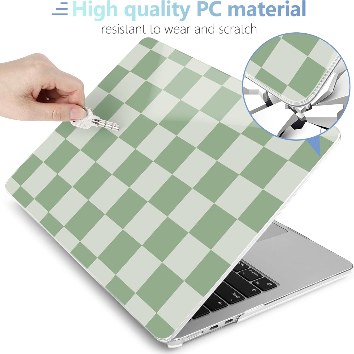 MEEgoodo Case for M4/M3/M2 MacBook Air 13.6 inch Case 2025 2024 2022, Fit Model A3240/A3113/A2681, Laptop Hard Shell with Keyboard Cover Compatible with MacBook Air 13 inch, Green Checkered