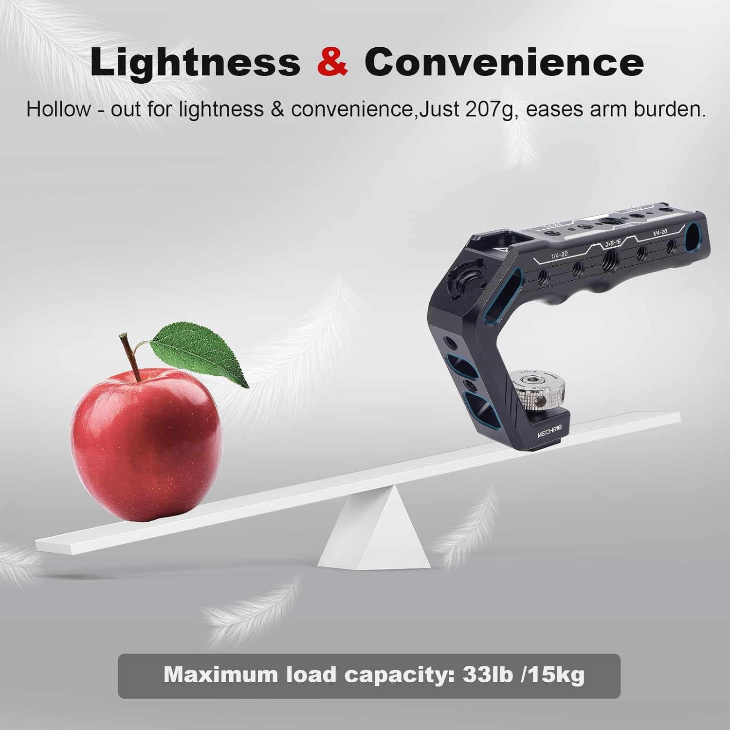 - Ergonomic Weight Optimization: Hollow-core CNC aluminum body reduces weight to 207g (0.95oz) without compromising 15kg payload capacity for RED Komodo rigs
