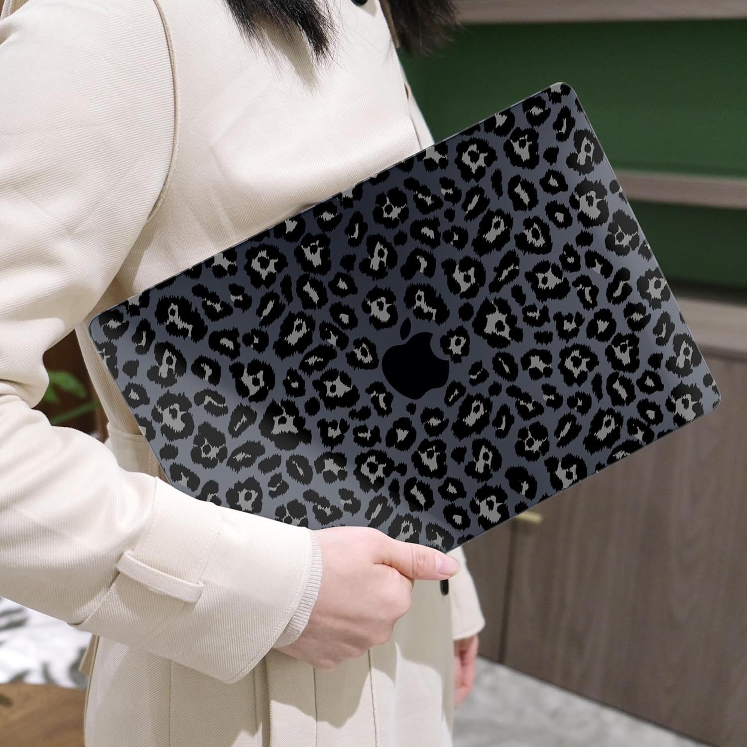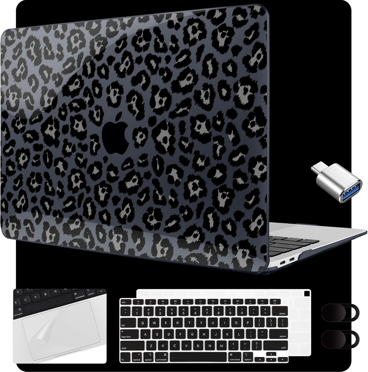 MEEgoodo for MacBook Air 13.3 inch Case 2021 2020 2019 2018 A2337 M1 A2179 A1932, Laptop Shell for MacBook Air M1 with Keyboard Webcam Cover & Trackpad Film & Type C Adapter,Snow Leopard Texture