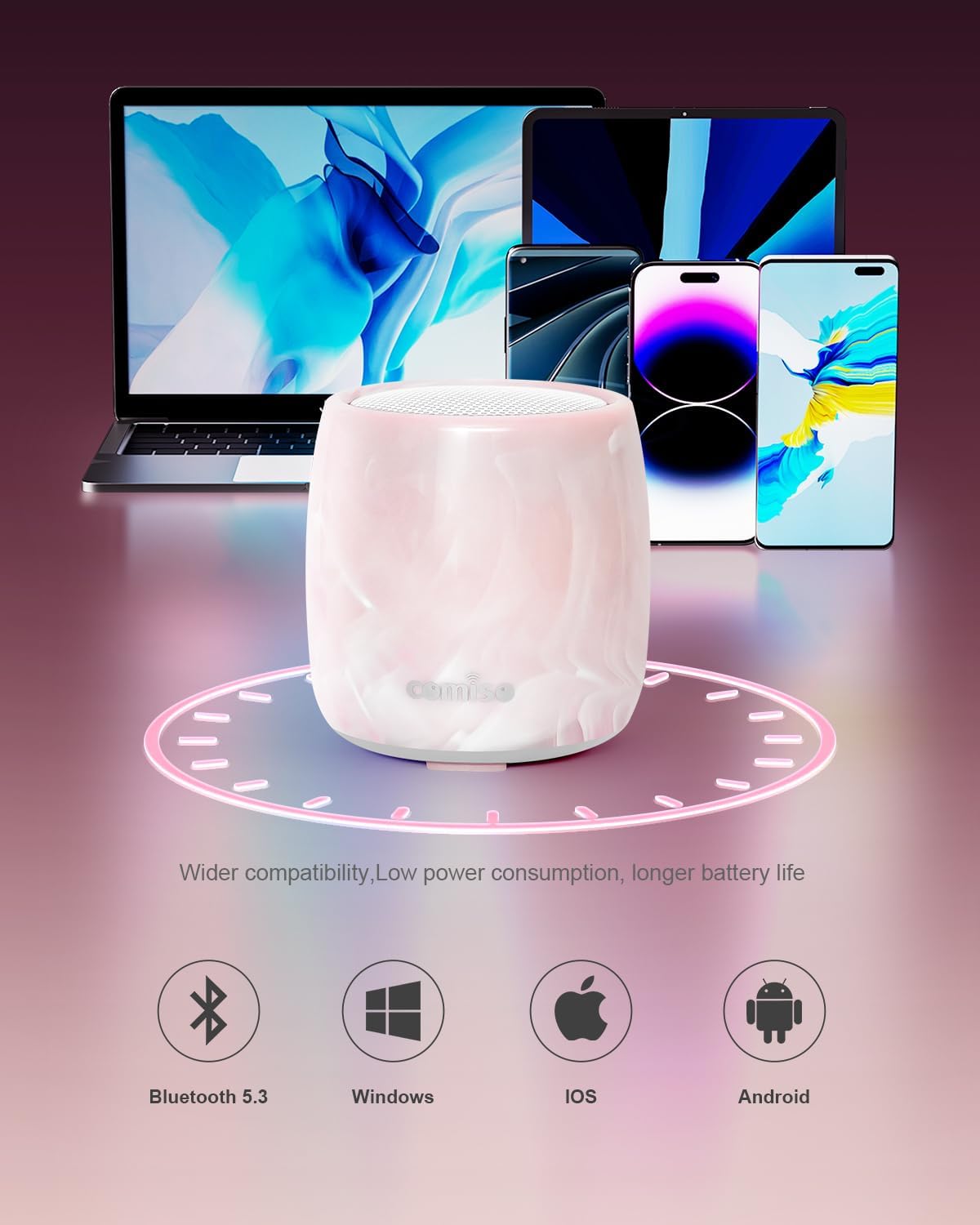 - [LATEST BLUETOOTH 5.3 TECH & WIDE COMPATIBILITY] This wireless speaker transmitted by A2DP technology, lower power consumption, faster transmission and lag-free calls compared to previous generation Bluetooth technology. Mini Bluetooth speaker with built-in rechargeable battery, with a full charge and playing at medium volume, it gives you about 7~10 hours of uninterrupted music Journey. At the same time, this wireless speaker is compatible with multiple devices such as computers,mobile phones.