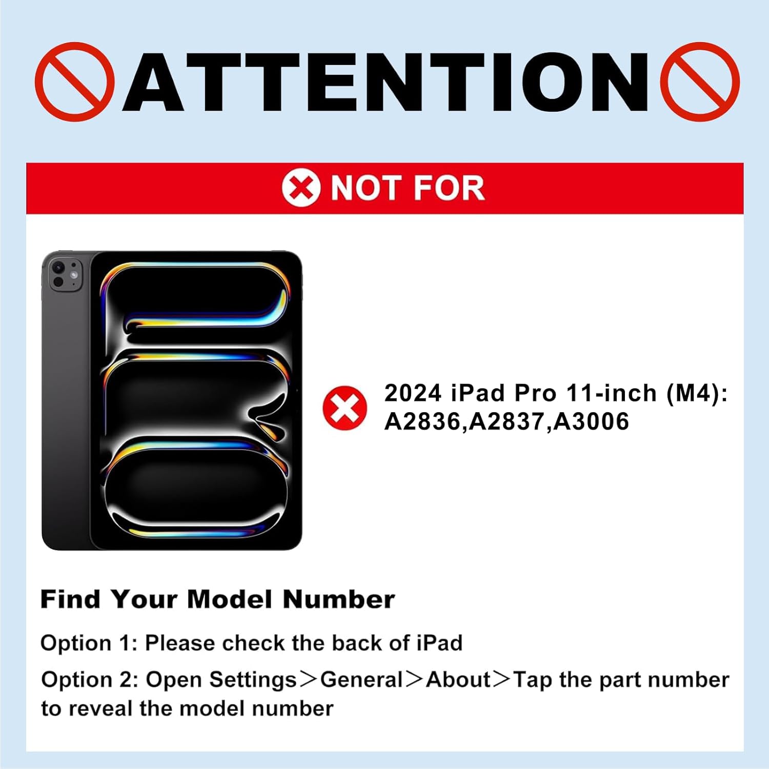 - ๐๐จ๐ฆ๐ฉ๐๐ญ๐ข๐๐ข๐ฅ๐ข๐ญ๐ฒ๏ผDesigned for 2025 M3 iPad Air 11" (A3266, A3267, A3270), 2024 M2 iPad Air 11" (A2902, A2903, A2904), 2022 iPad Pro 11" 4th generation (A2435, A2759, A2761, A2762), 2021 iPad Pro 11" 3rd generation (A2377, A2301, A2459, A2460), 2020 iPad Pro 11" 2nd generation (A2228, A2068, A2231), 2018 iPad Pro 11" 1st generation (A1980, A2013, A1934, A1979), 2022 iPad Air 5th generation (A2588, A2589, A2591), 2020 iPad Air 4th generation (A2072, A2316, A2324, A2325).