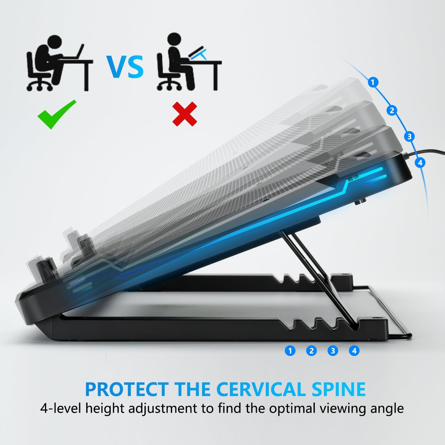 - đăErgonomic & Wide Compatibilityă The adjustable stand offers multiple height levels to help improve posture and reduce neck strain. Compatible with 12"â18" laptops, including thin ultrabooks, heavy gaming machines, and everything in between.