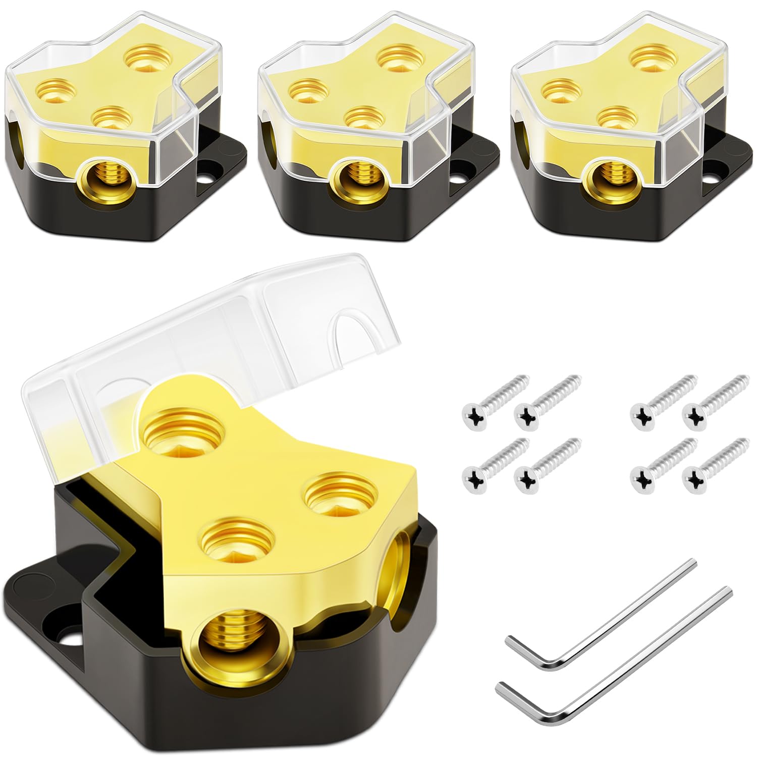 - 【Package】: What you get: 4 x 12V Wire Distribution Block (1 way in 2 ways out), 4 x Clear Cover, 2 x Wrench, 8 x Mounting Screws. A reliable choice for your electrical needs!