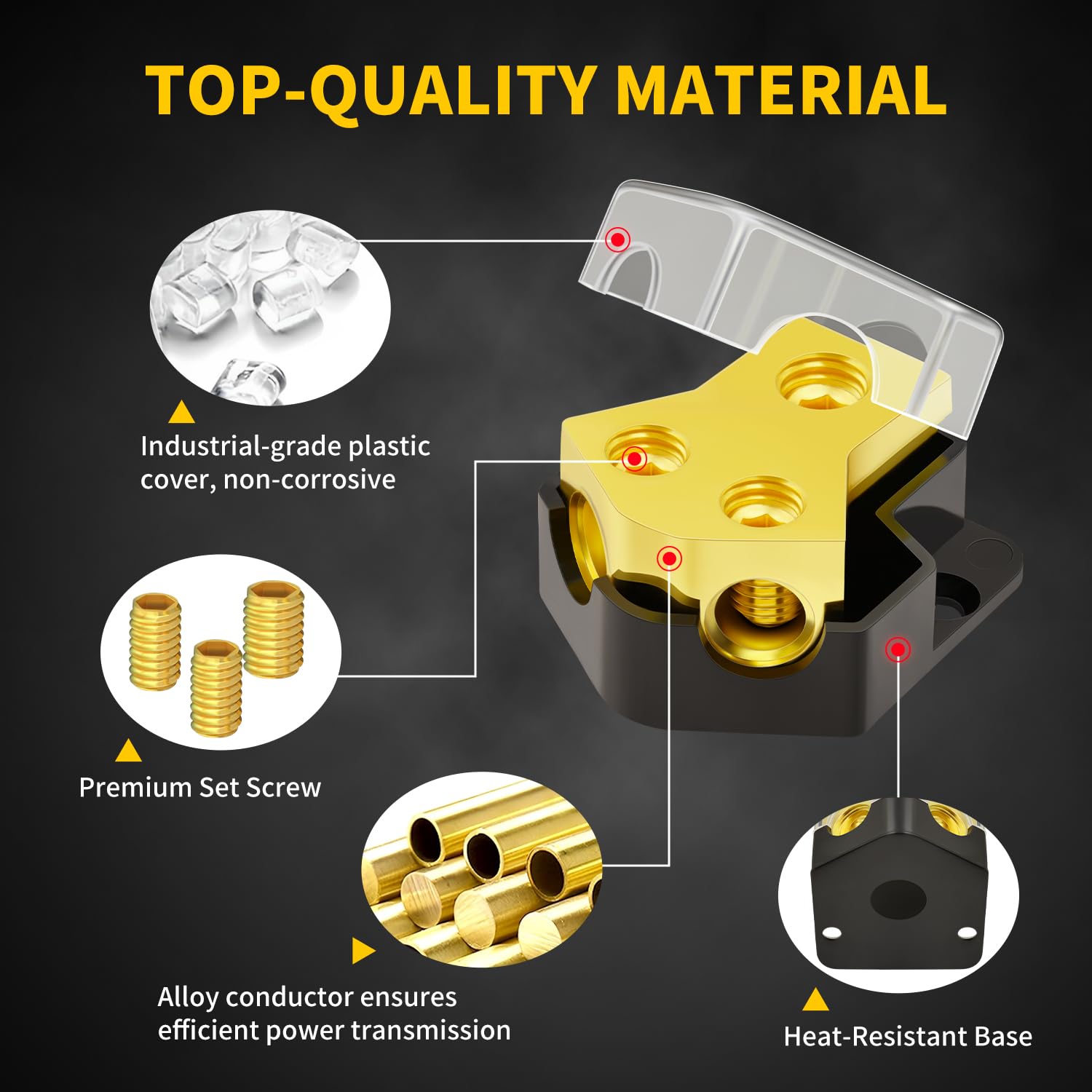 - 【Made with Reliable Material】: The car audio distribution block features a sturdy snap-on plastic cover that's corrosion-resistant, waterproof, and dust-proof, protecting the exposed area for safer use. Internal high-sensitivity alloy material has good electrical conductivity, and it can also avoid wire rust or oxidation.