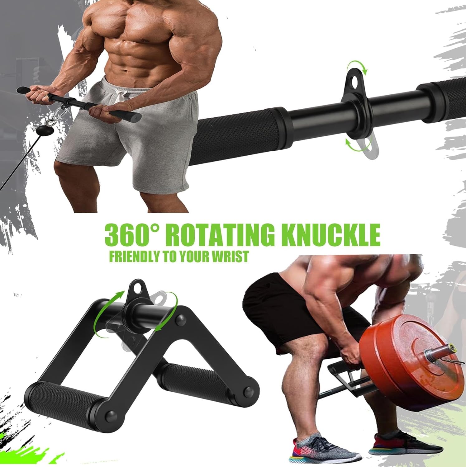 - Double D Handle&Straight Bar-The 360° swivel buckle allows natural rotational movement, perfect for multi-angle exercises that engage elbows, wrists, back and shoulders - ideal for seated row and lat pulldown,target your back, shoulders, forearms, triceps, and biceps