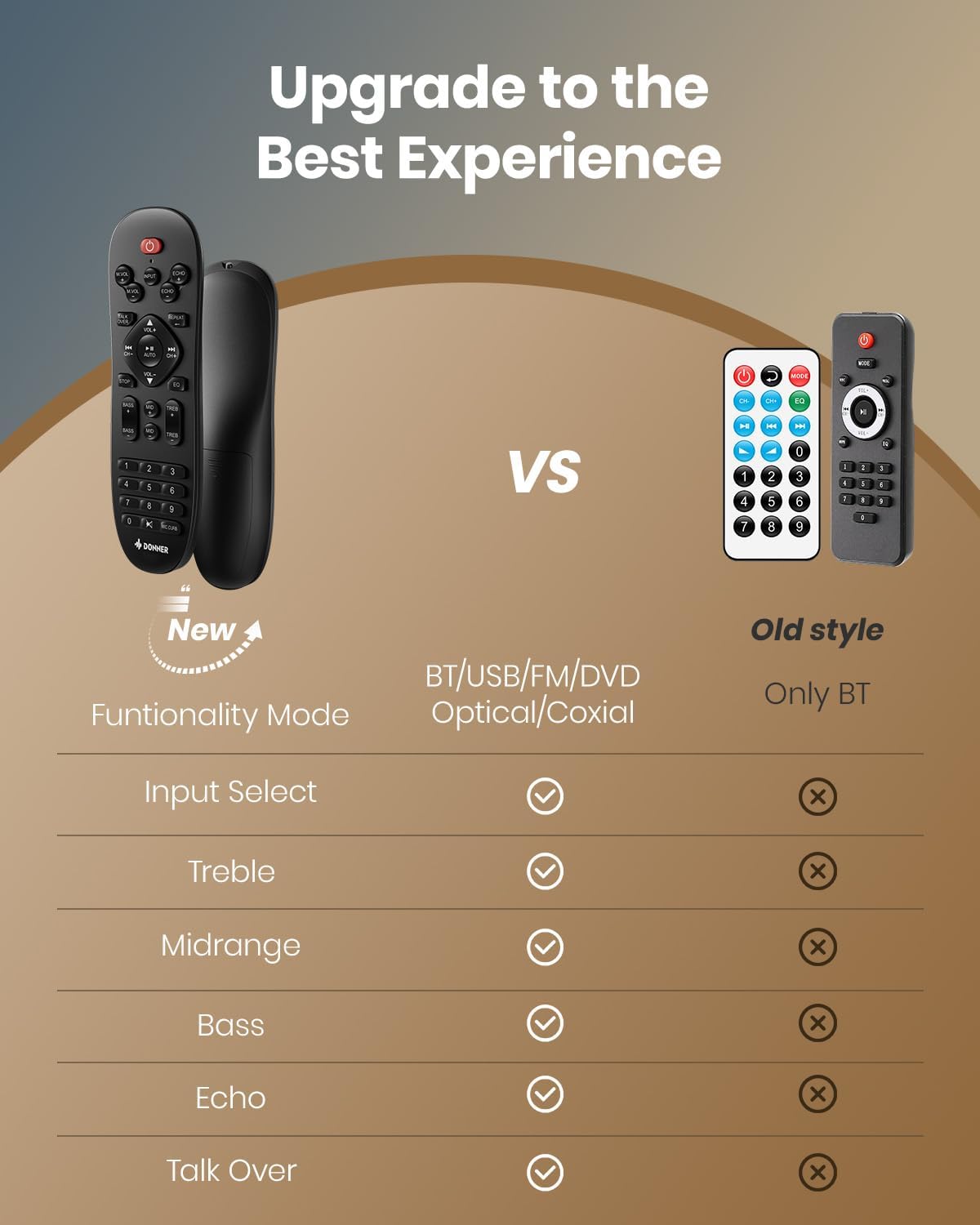 - MULTIFUNCTION REMOTE: Without the limitation of a single function, our amplifier home audio comes with an upgraded remote control that can use the setting functions of treble/ midrange/ bass/ echo/Talkover in any input mode