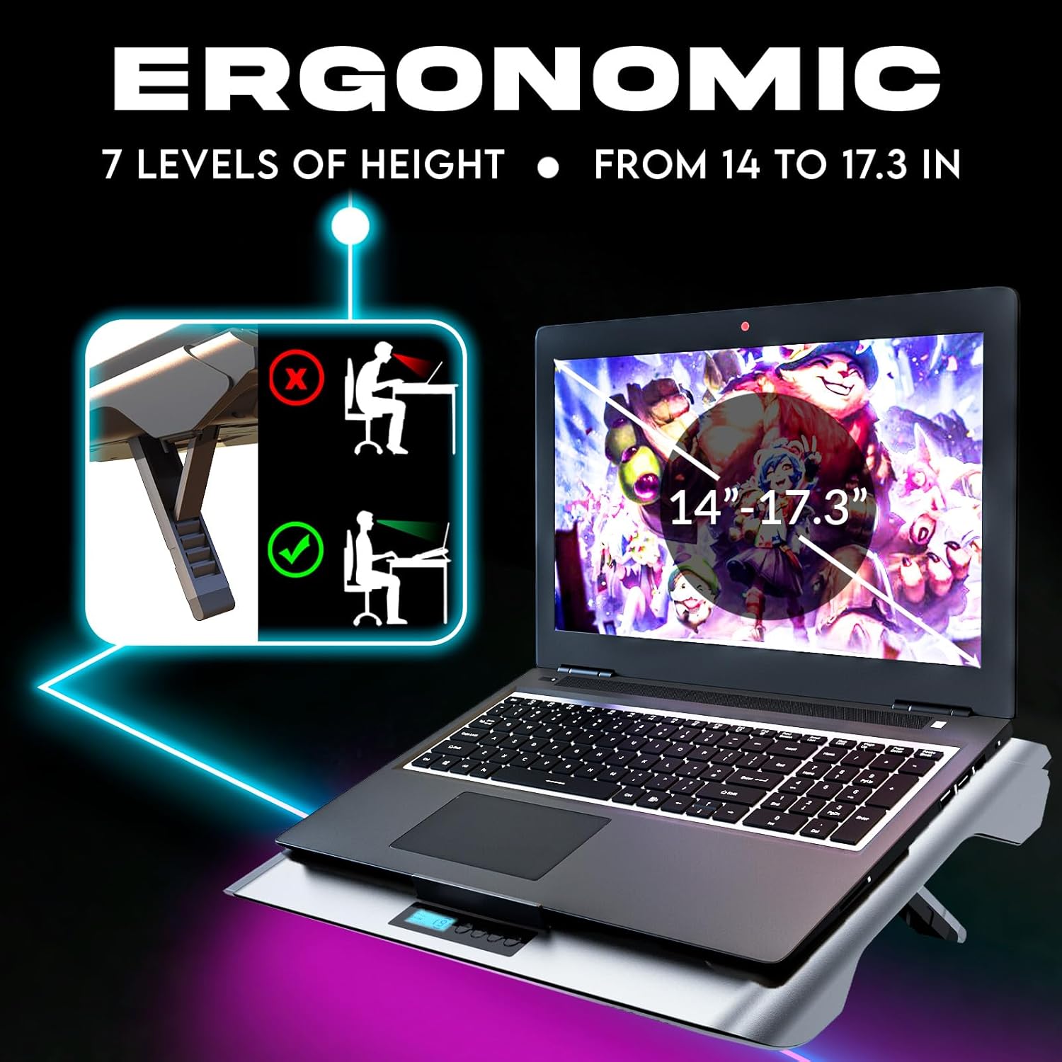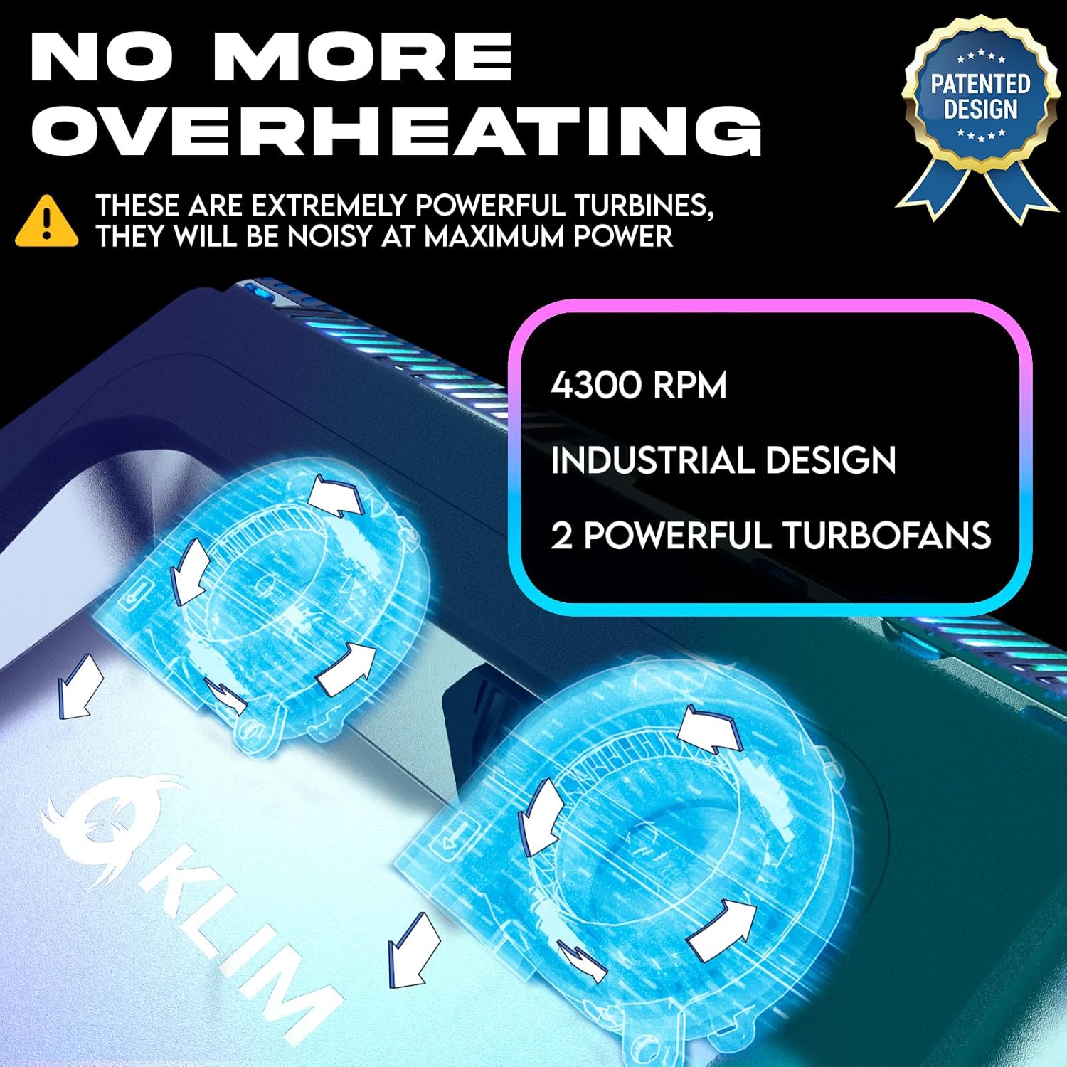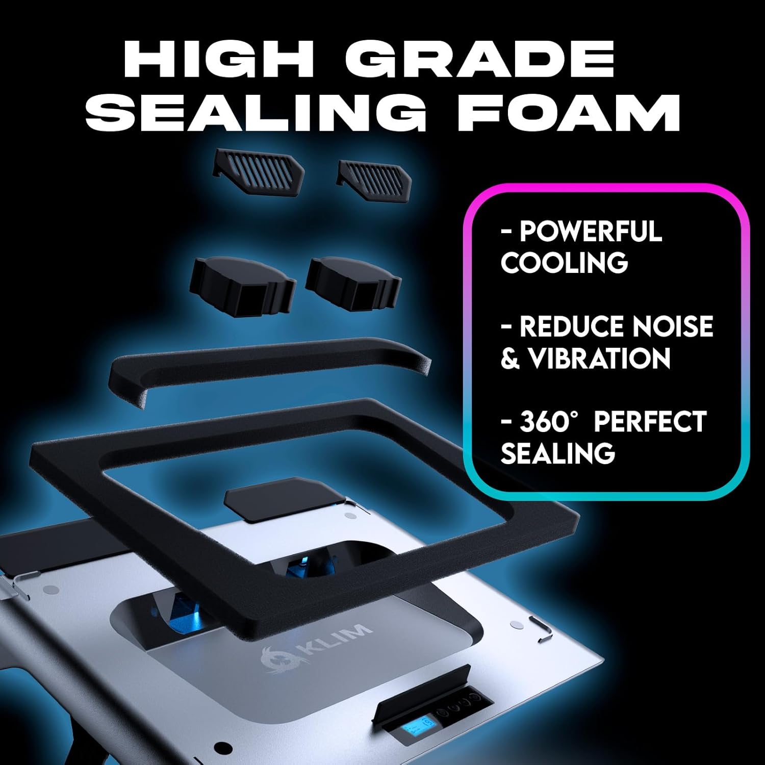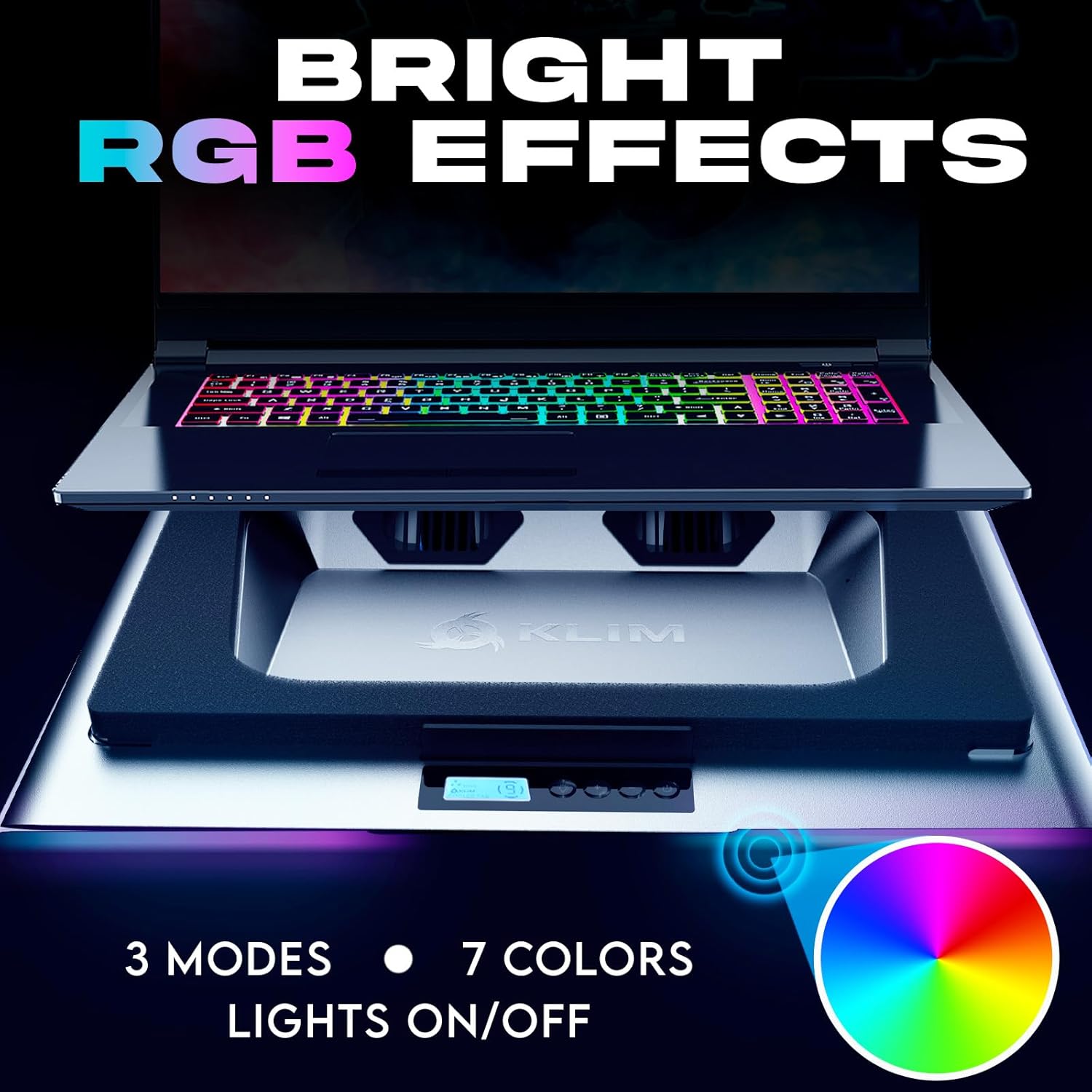 KLIM Everest Laptop Cooling Pad | Powerful 4300 RPM Turbo Fans | Sealed Foam for Maximum Cooling | Protect Your Gaming Laptop from Overheating | Fits 14” to 17.3” Laptops | RGB Lights