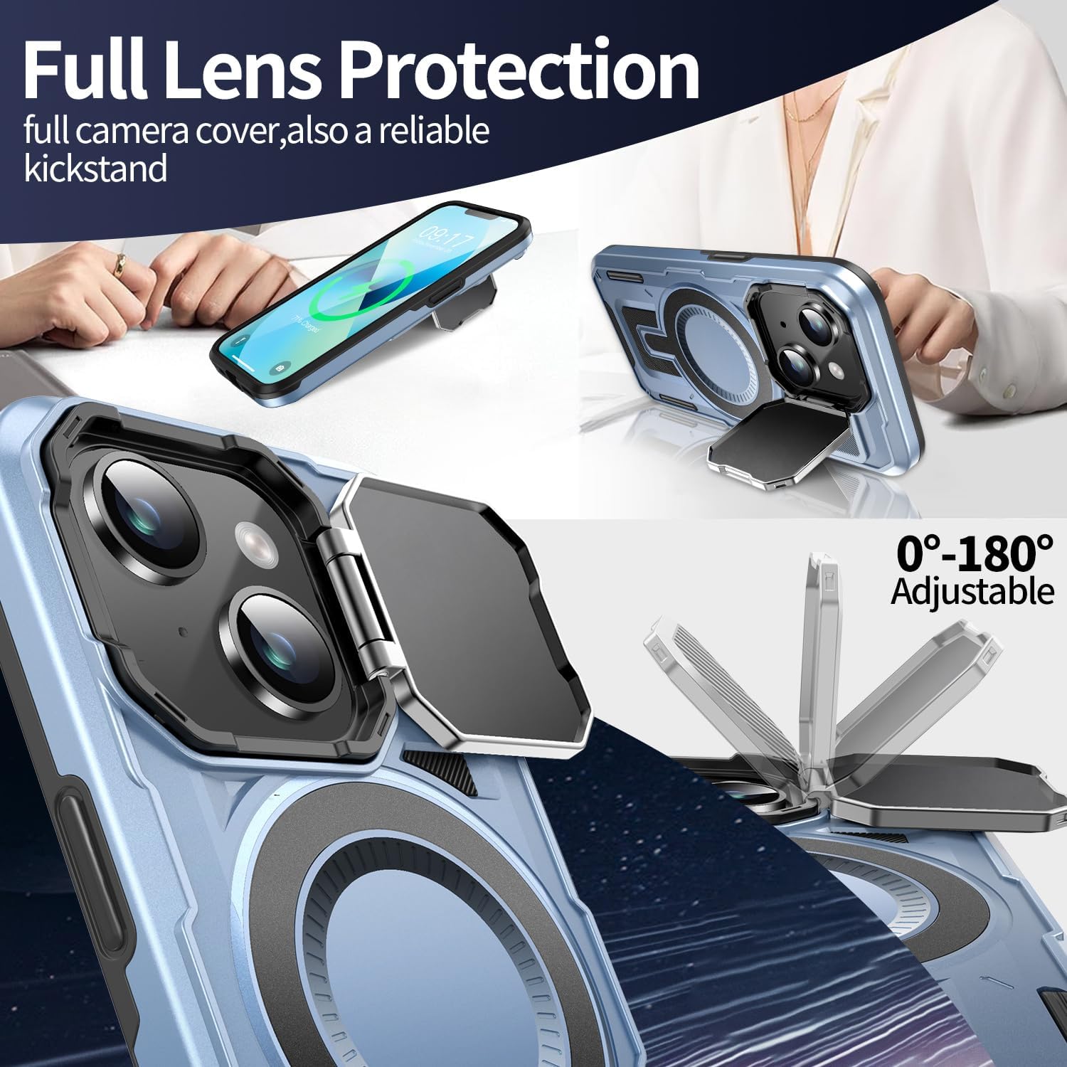 Camera Stand Case for iPhone 14 Plus, [Compatible with Mag Safe] [Lens Cover] 2024 Version Military Grade Protective Soft Case for iPhone 14 Plus 6.7 inch Men Women,Blue