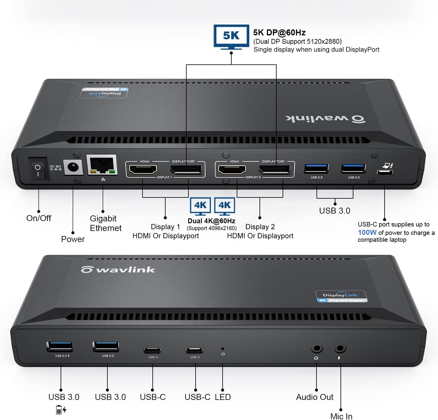 - Powerful Charging Capability: Charge your laptop with up to 100W (96W certified) directly through the DisplayLink docking station.