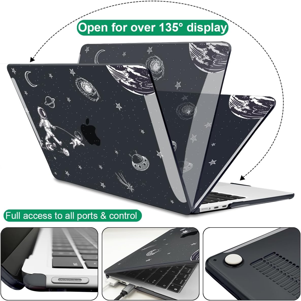 for MacBook Air 13.6 inch Case 2025 2024 2023 2022 Release M4 A3240 M3 A3113 M2 A2681, Black Printed Plastic Hard Shell Case Cover for Mac Air 13.6 M4 Chip Touch ID, Astronauts Space Dog