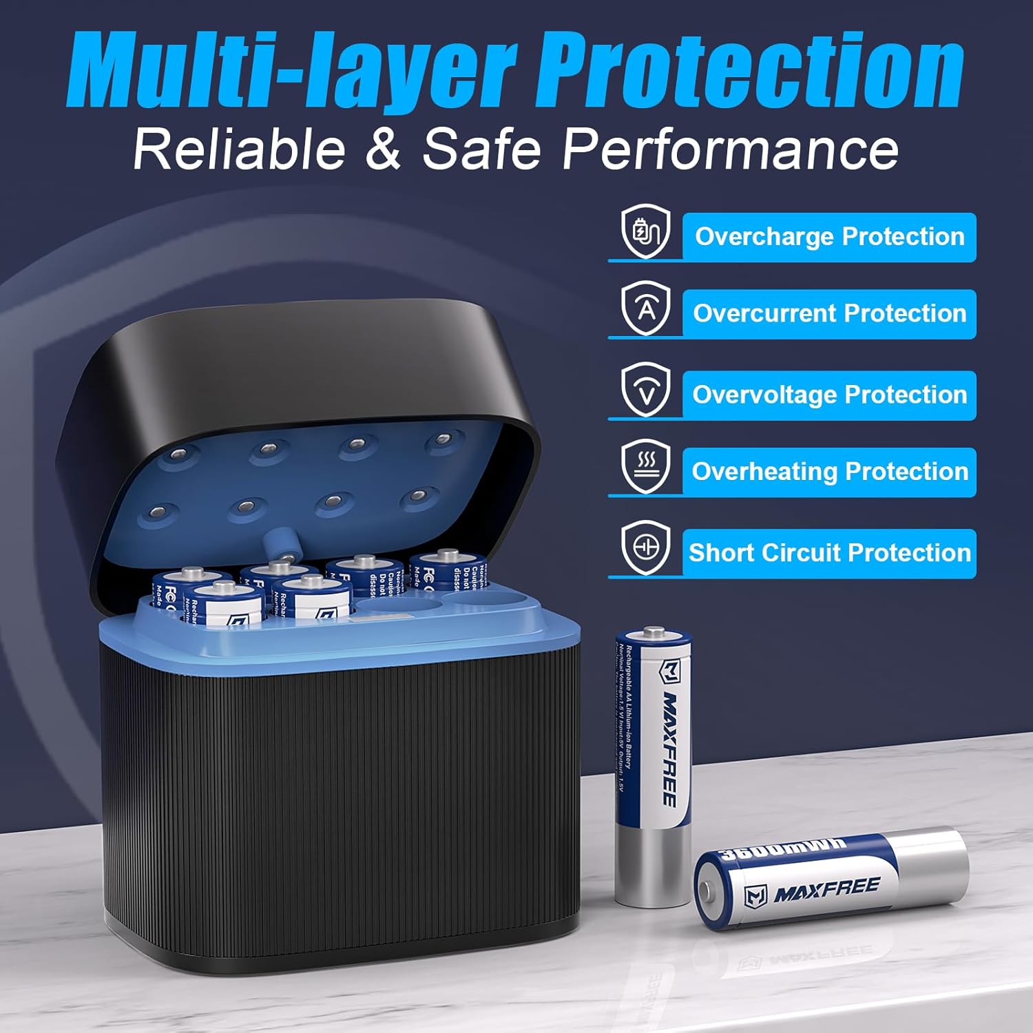 - DUAL-PURPOSE COMPATIBILITY: This set includes 8 aa lithium batteries, no NiMH batteries. Lithium batteries offer superior performance, reliability, and longer-lasting power for a wide range of devices. Our Maxfree Chargers support both lithium batteries aa and aa NiMH batteries (sold separately) in one charger; No need for separate devices; Perfect for households with multiple battery-powered devices.