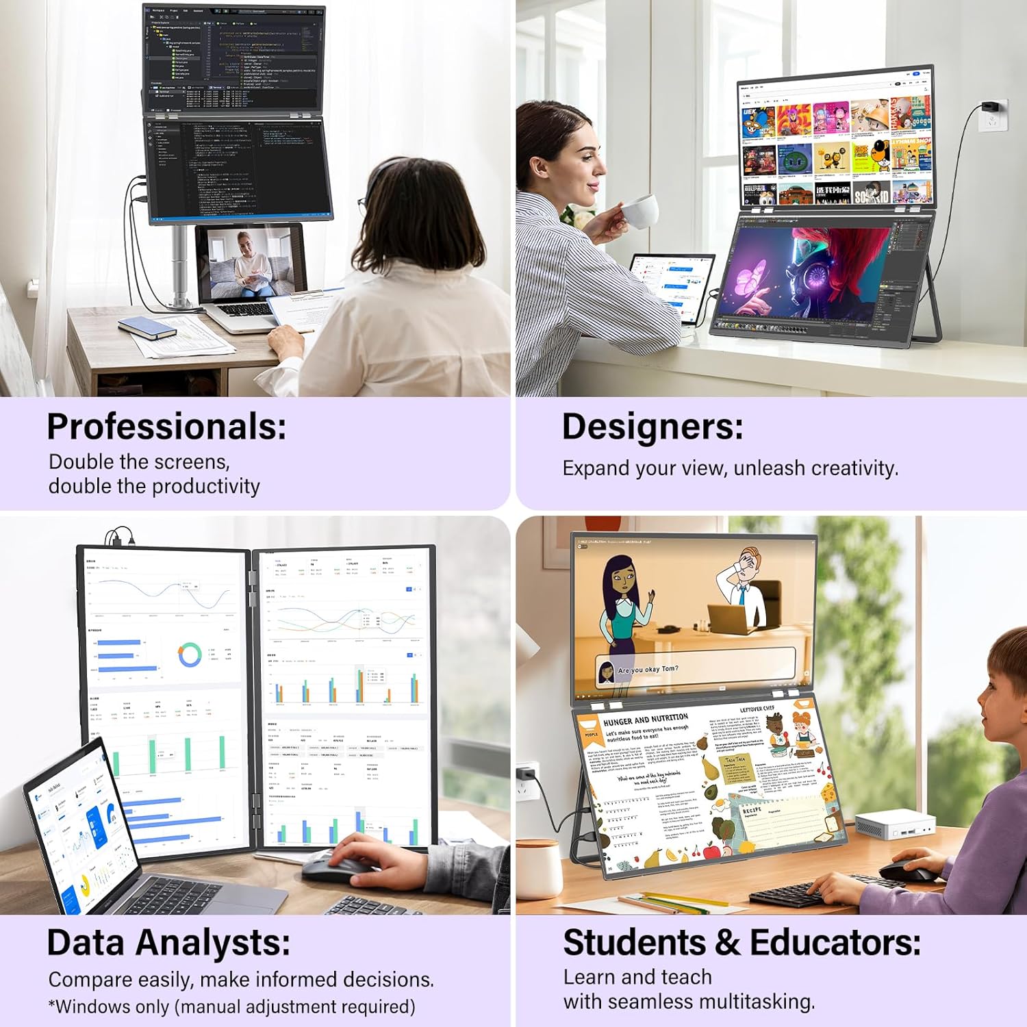 - 【Reliable After-sales Support】 Enjoy 30-day no-questions-asked returns + 18-month full warranty! Backed by reliable quality assurance and dedicated support, explore the limitless possibilities of your 23.8-inch folding 23.8" inch dual monitor 2k with complete peace of mind.