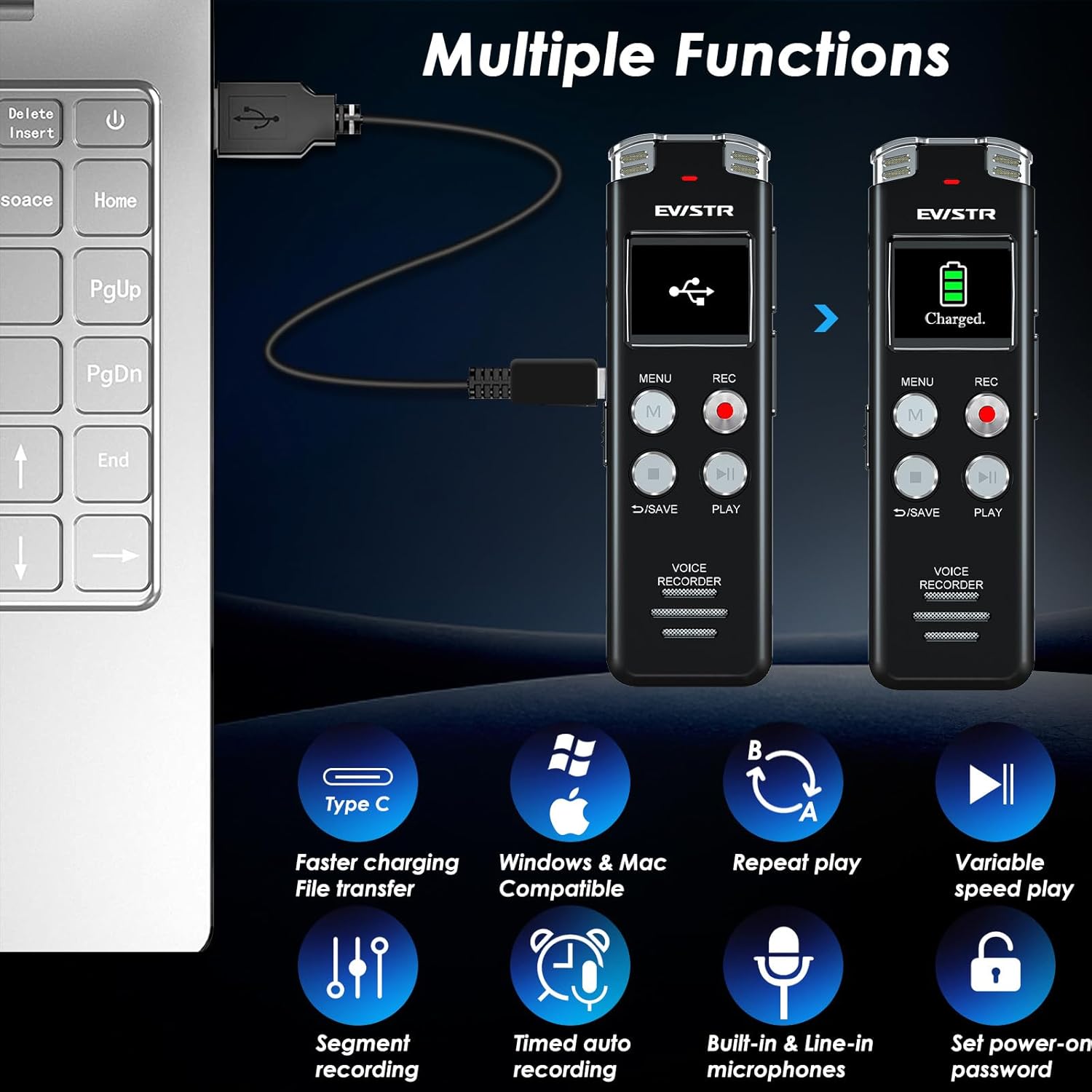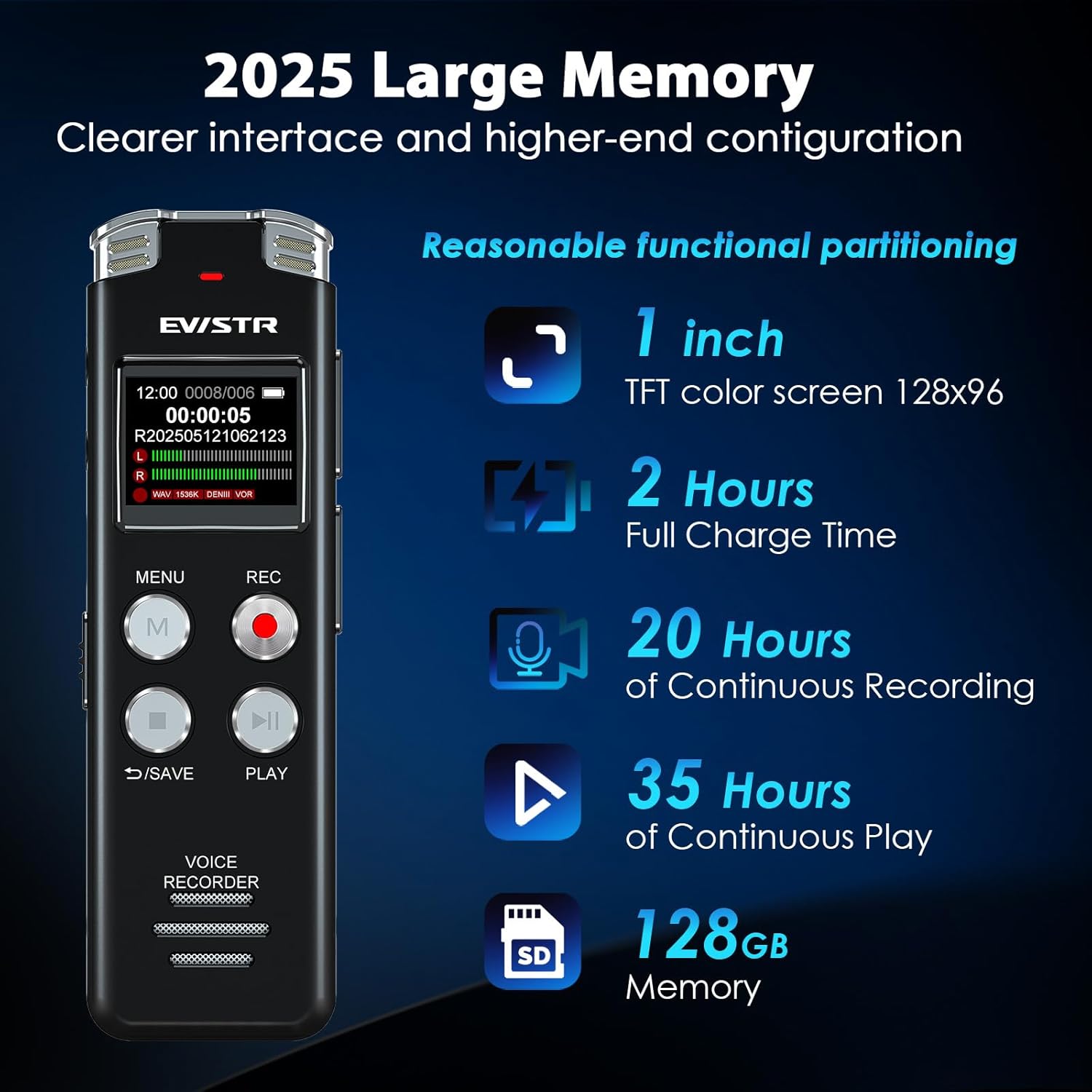 - User - Friendly & Feature - Rich: The EVISTR digital audio recorder couldn't be easier to use, with just two buttons: press "rec" to start recording right away and "save" to save your recordings. You can choose between wav and mp3 recording formats. This voice recorder with playback also has playback features like A - B repeat, rewind, and variable - speed playback. Plus, you can set time - slot recordings and auto - record, and the optimized menu interface makes navigating functions a breeze.