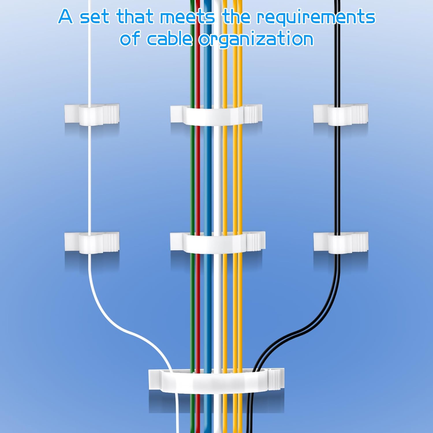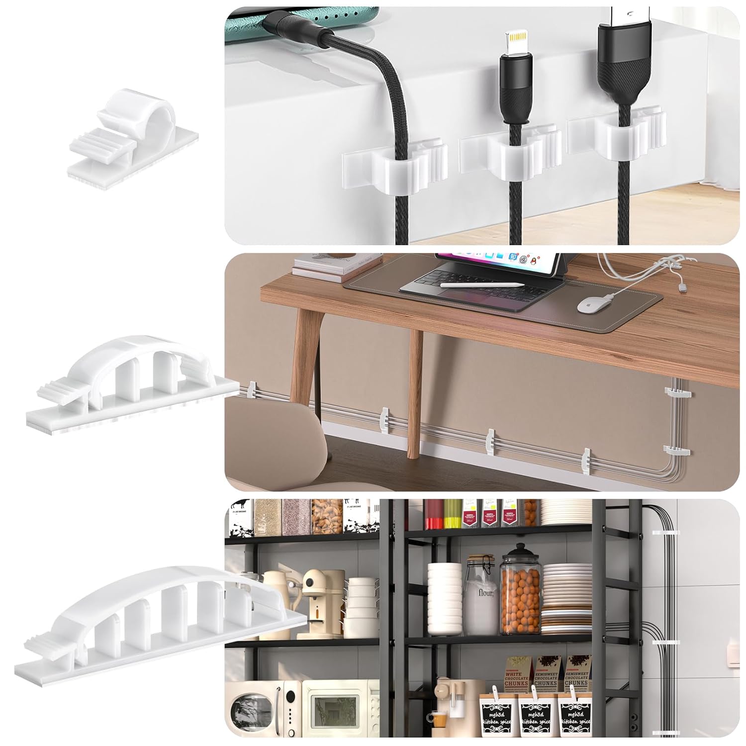 XHF 30pcs Adhesive Cable Wire Clips Kit White, Outdoor Cable Management Wire Organizer Cord Holder for Under Desk, Car, Wall, TV PC Ethernet Cable