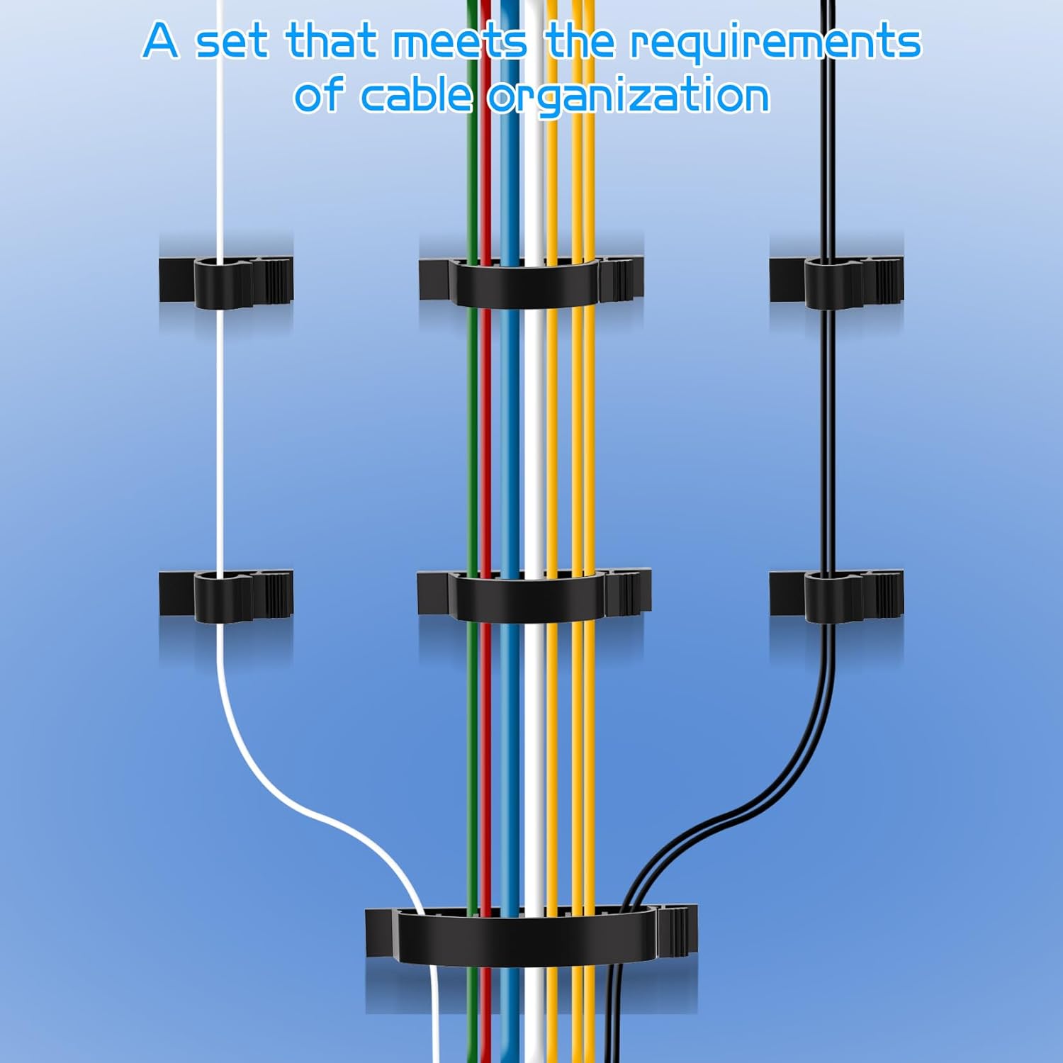 XHF 30pcs Adhesive Cable Wire Clips Kit Black, Outdoor Cable Management Wire Organizer Cord Holder for Under Desk, Car, Wall, TV PC Ethernet Cable