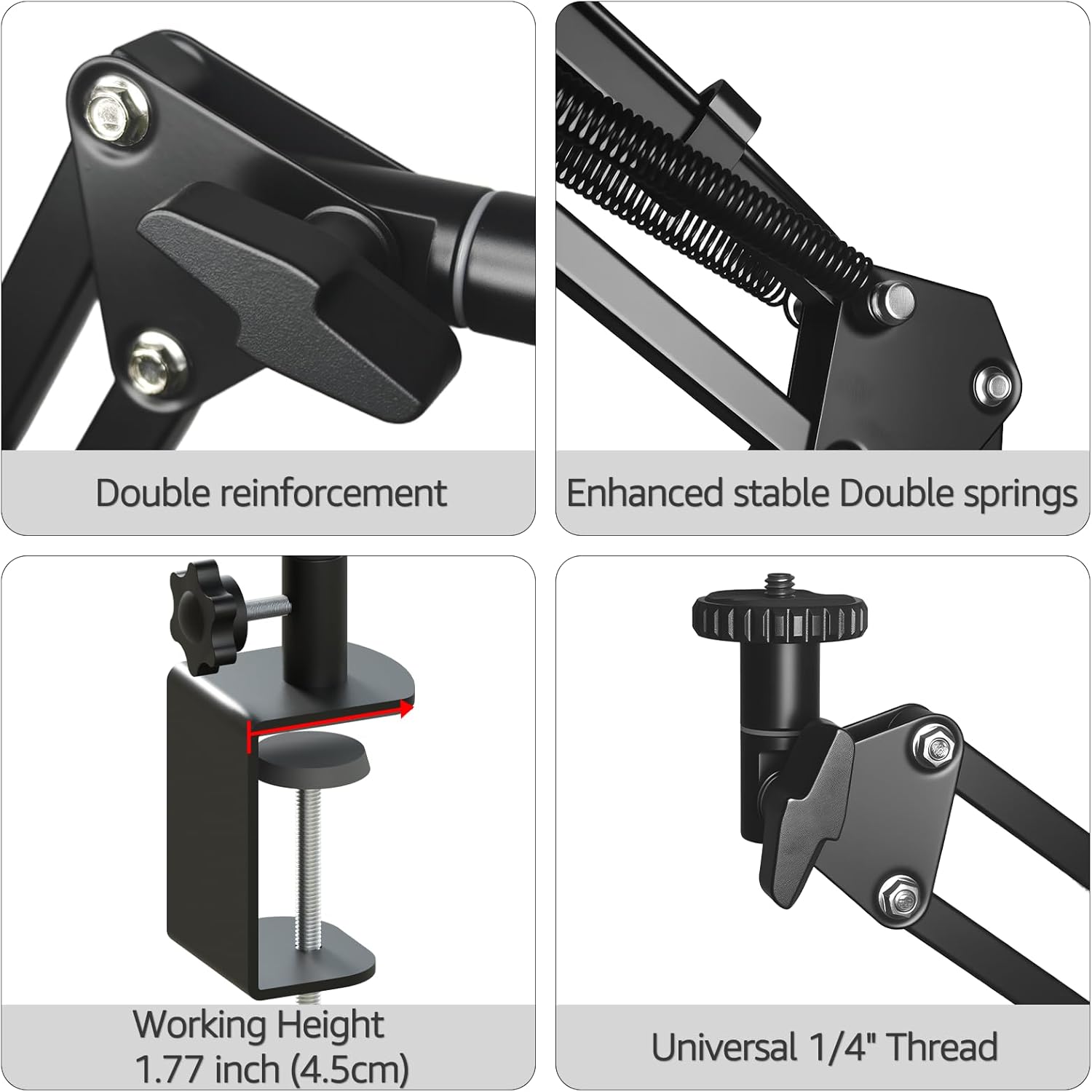 - STEADY OVERHEAD and MULTI-ANGLE CAPTURE: All-metal high-density frame suppresses vibration for tack-sharp top-down shots. Multi-joint range: clamp head 360° rotation, lower arm 225° forward/back, mid-joint 270° tilt, lamp mount 225° tilt, ball head 360°. Lock quickly for cooking demos, DIY/handcraft tutorials, unboxing, product photography, art classes, nail/beauty studios, Etsy sellers, small businesses, and educators needing stable A-overhead views on desks, kitchen islands, or craft tables