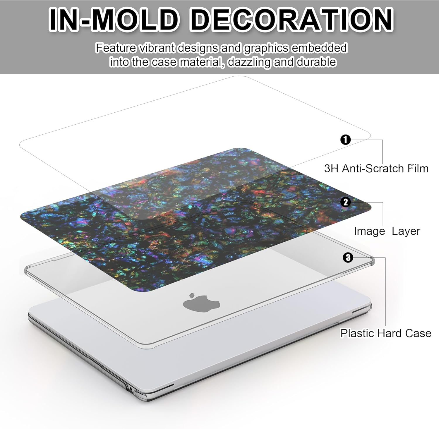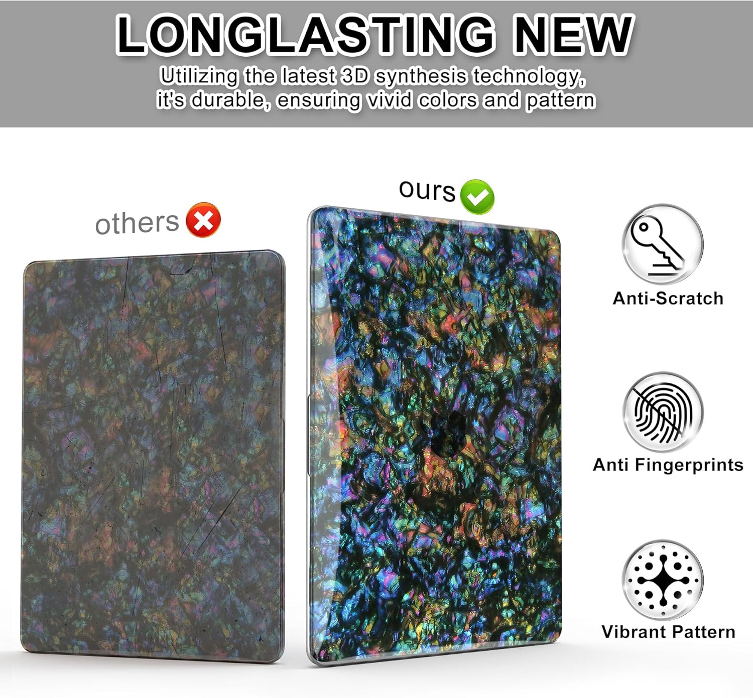 - Complete Bundle: The package includes 1 glitter abalone pearl shell top case, 1 matte clear bottom case, 1 clear keyboard cover, and 1 screen protector. Additionally, please get in touch with us if you encounter any problems, we will work to make it right