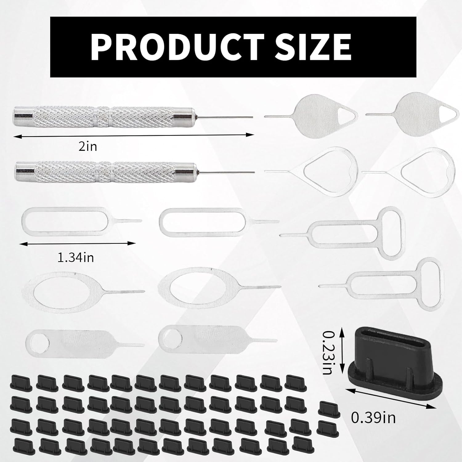 - Package Contents: You will receive 16 pieces of card tray eject pins, with 50 pieces of mobile phone dust plugs type-c data plugs. The lightweight and compact design makes it easy to carry, you can hang sim card removal tool on a keychain or backpack and use it anytime, anywhere.