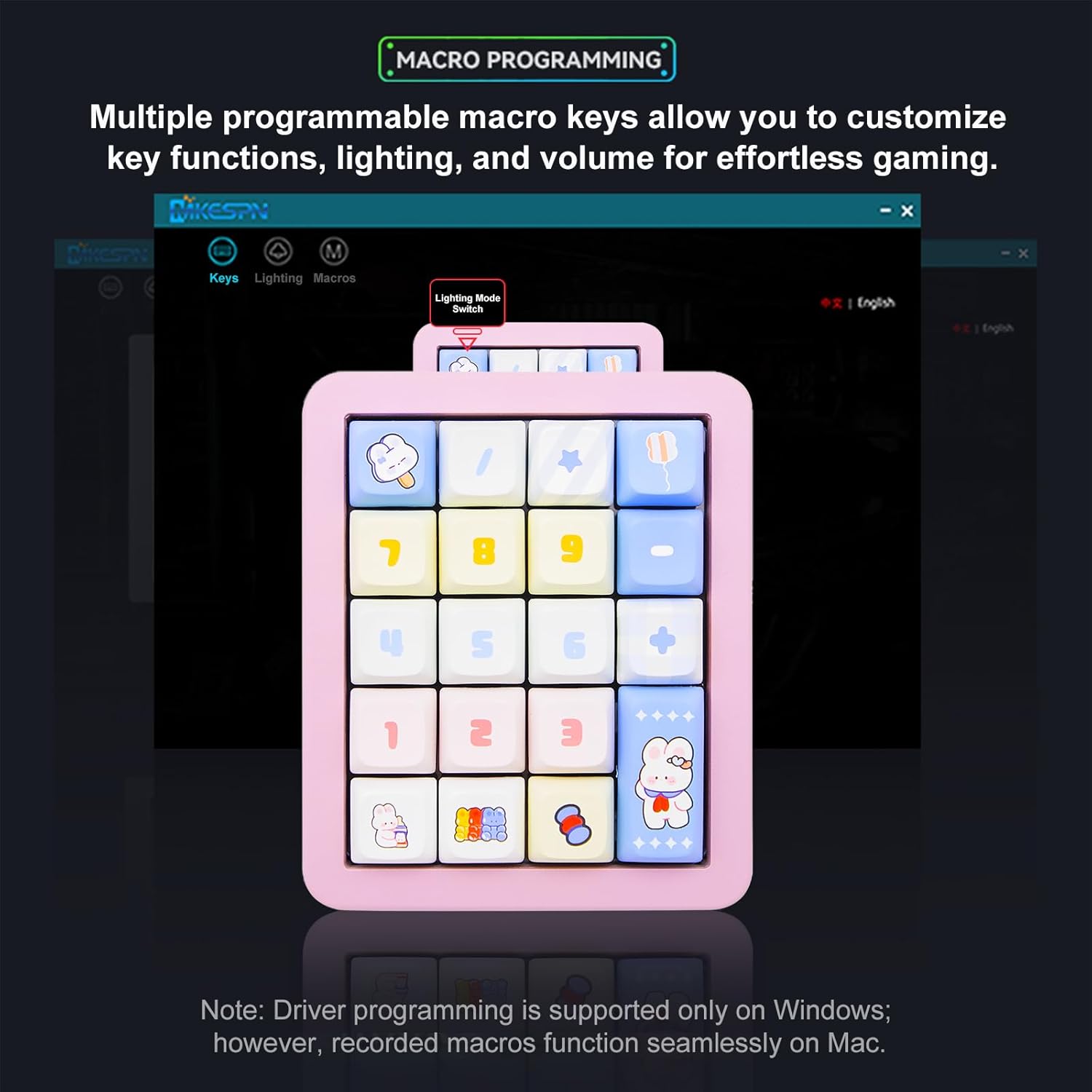 - 【Macro Programmable – Tailor Your Numpad Workflow】 Customize key functions, RGB lighting, and volume control through macro programming to streamline gaming and numeric data entry. Note: Driver software is only compatible with Windows for programming; once macros are recorded, they can be used on Mac without issues