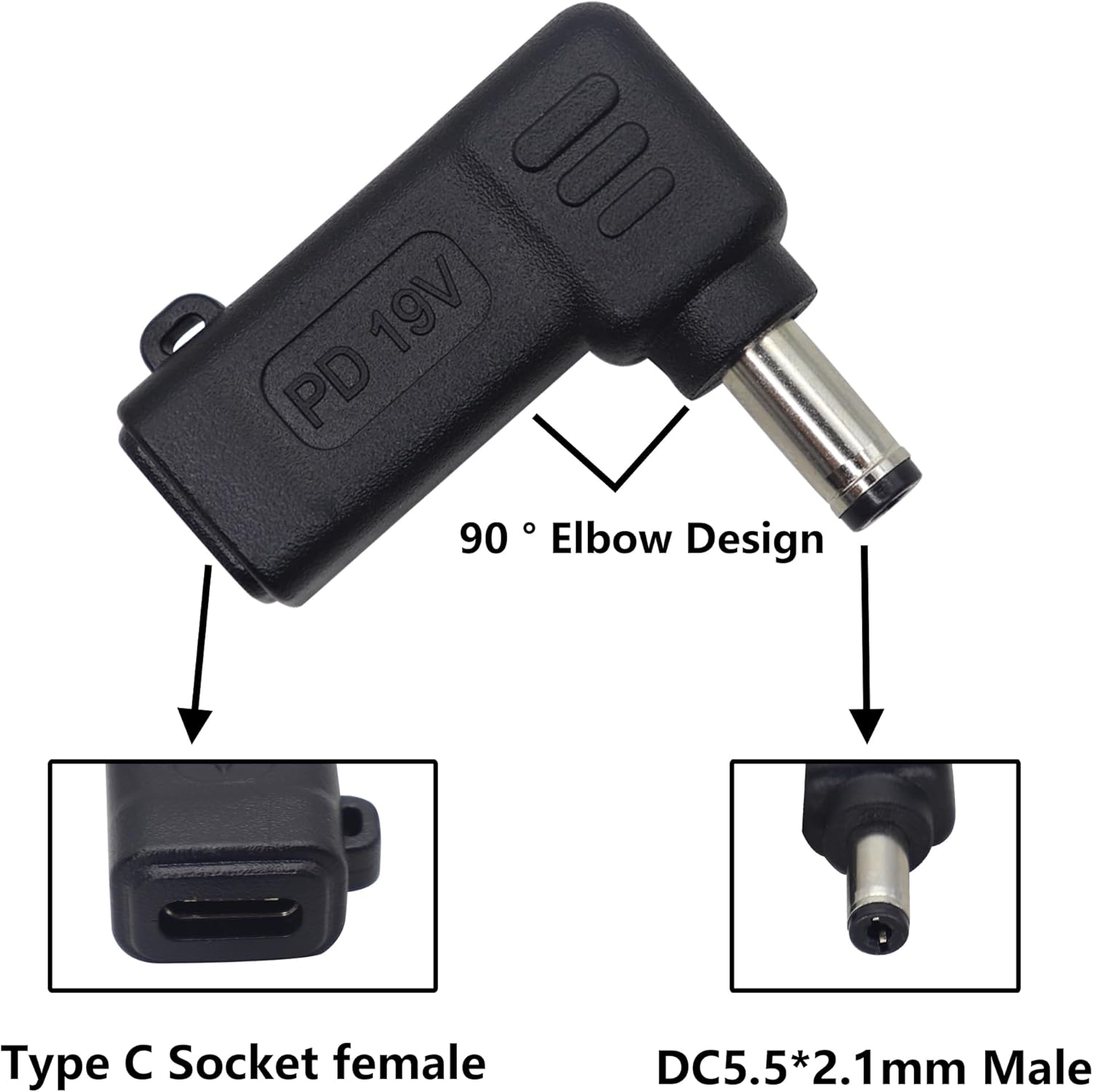 - [Package included]: We provide 1 black USB Type C to DC5.5 * 2.1 power adapter, connector 1: USB Type C female power interface. Connector 2: DC 5.5 * 2.1 male 90 degree power interface