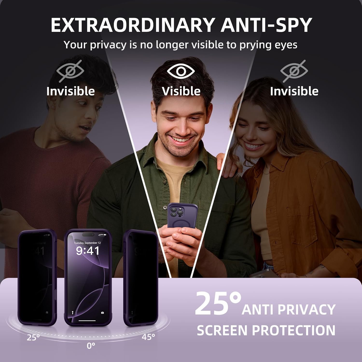 - [Built-in Privacy Screen Protector] BERFY for iPhone 16 Pro Max case with built-in privacy screen protector that protects your phone screen and personal information wherever you go, while also providing protection against drops and scratches