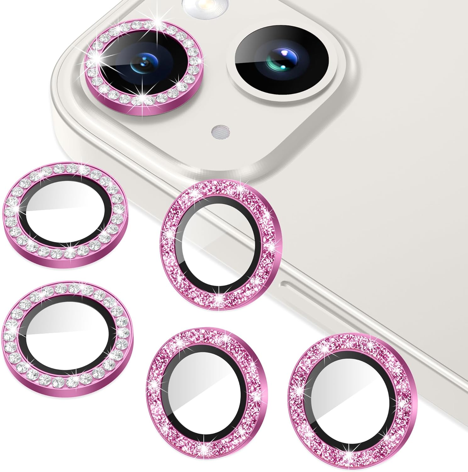- ⭕[Twinkle Design] These camera decorative rings are dazzling spectacle, reflecting light in a myriad of sparkling rays that add a touch of elegance and sophistication to the device. The ring's luminosity captures the eye, serves as a reminder that allows us to capture and share the world's beauty in vivid detail.