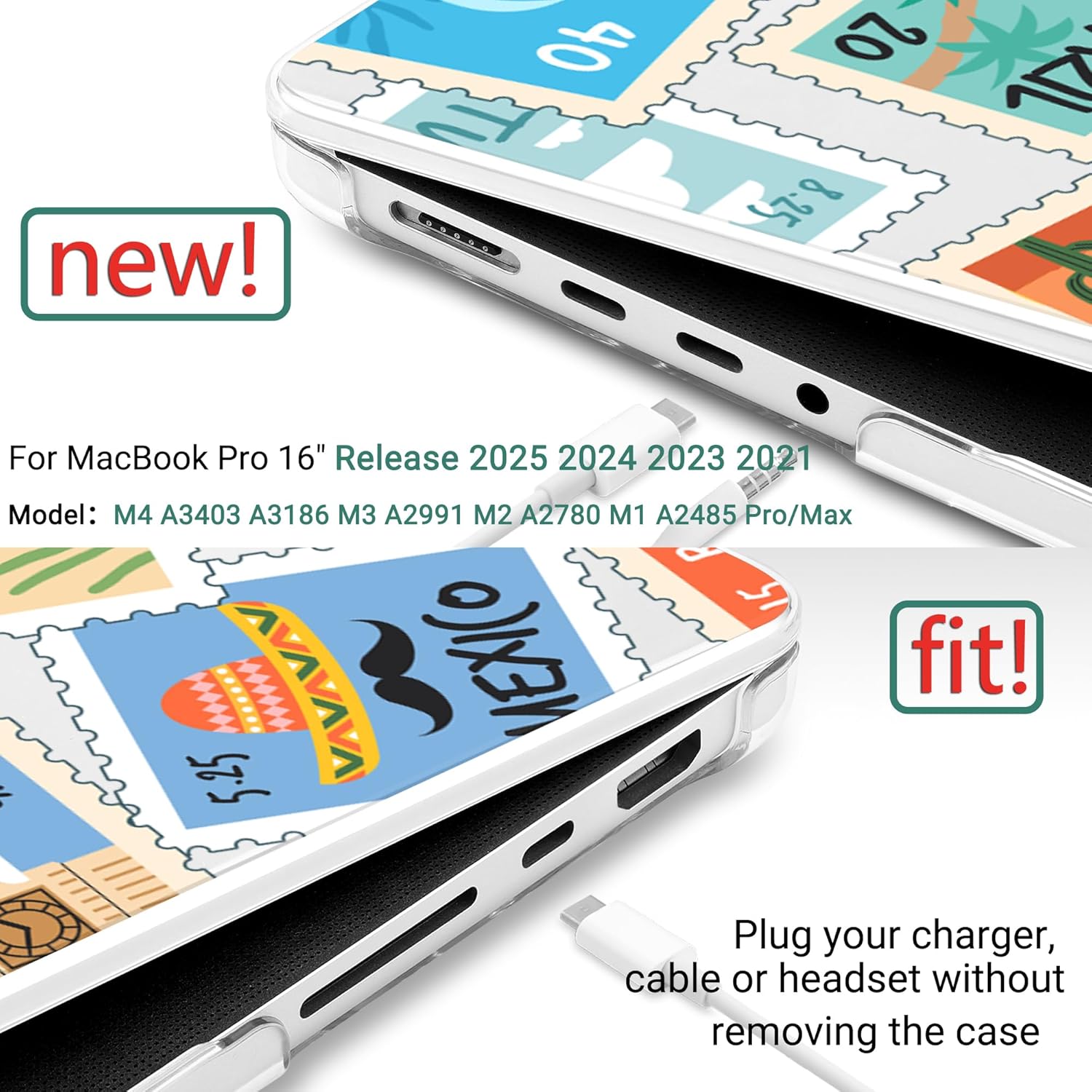 DONGKE for M4 MacBook Pro 16 Inch Case 2024 2023 2021 A3403 A3186 M3 A2991 M2 A2780 M1 A2485 Pro/Max Chip, Plastic Hard Shell Case & Keyboard Cover for Mac Pro 16 with Touch ID, Post Stamps