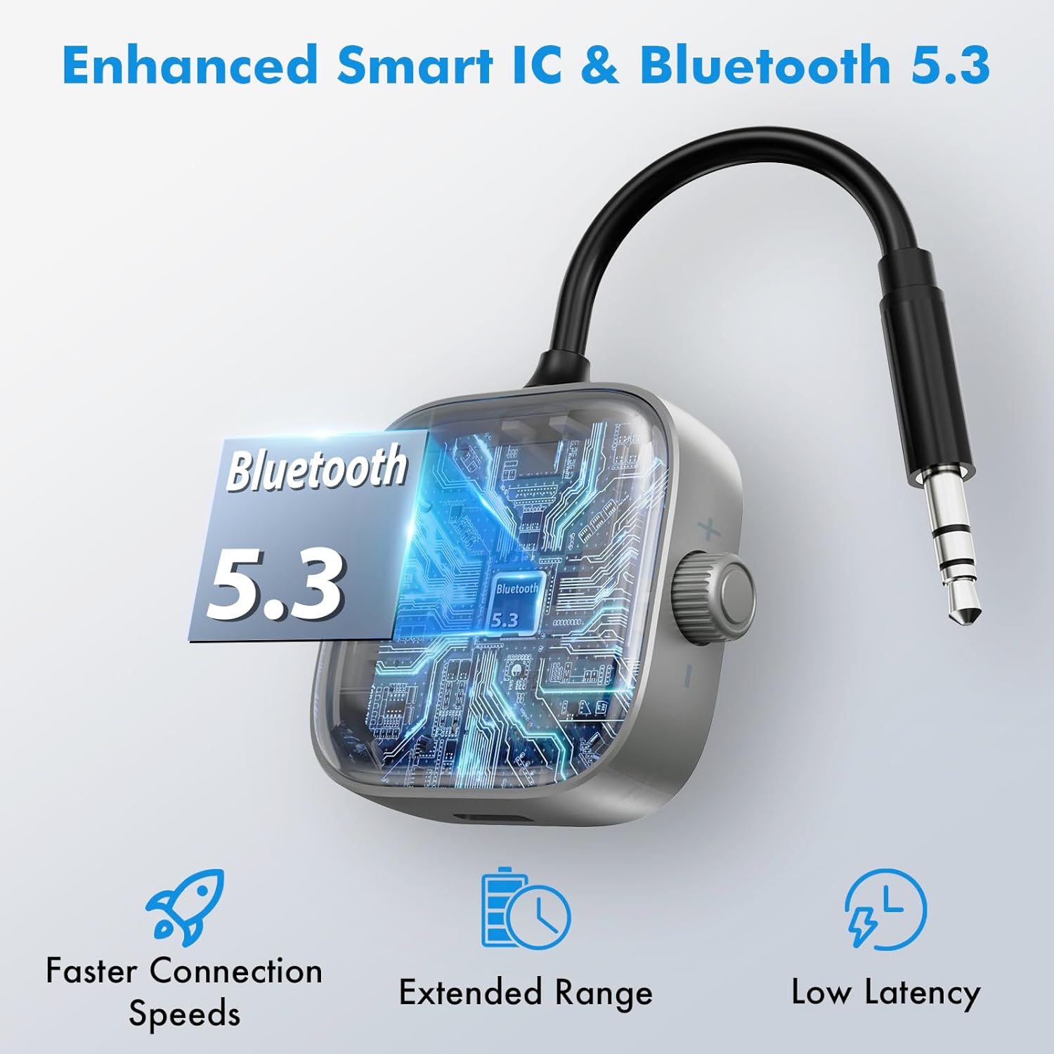 - Travel-Friendly Wireless Freedom – Powered by advanced Bluetooth 5.3 technology, convert any 3.5mm audio jack into a compact wireless Bluetooth transmitter for tv, in-flight entertainment, gym equipment, gaming devices, car stereos, and more