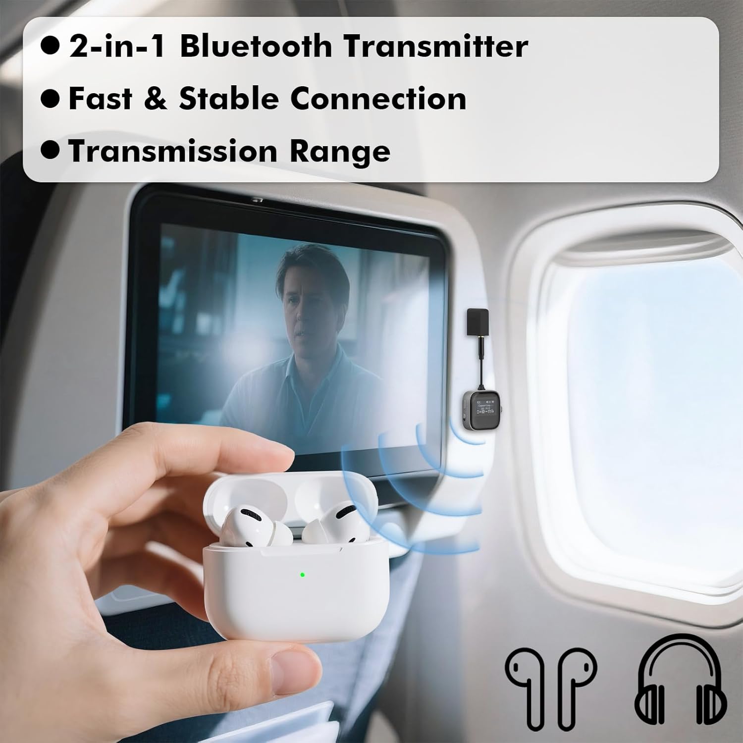 - Low Latency & Crystal-Clear Sound – Experience seamless audio transmission with minimal delay, perfect airplane bluetooth adapter for headphones, watching TV, gaming, or enjoying high-quality music wirelessly
