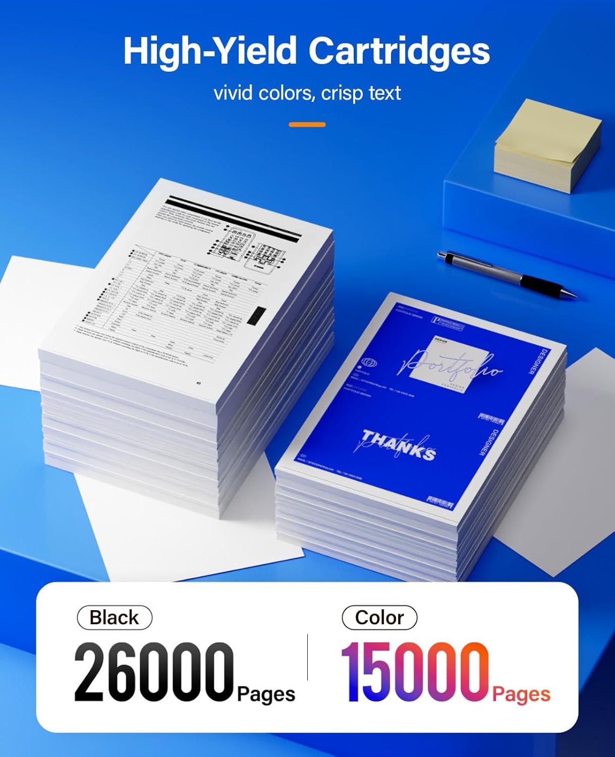 - High Page Yield: 26,000 pages for Black and 15,000 pages for Color toner cartridge (Letter/A4, at 5% coverage)