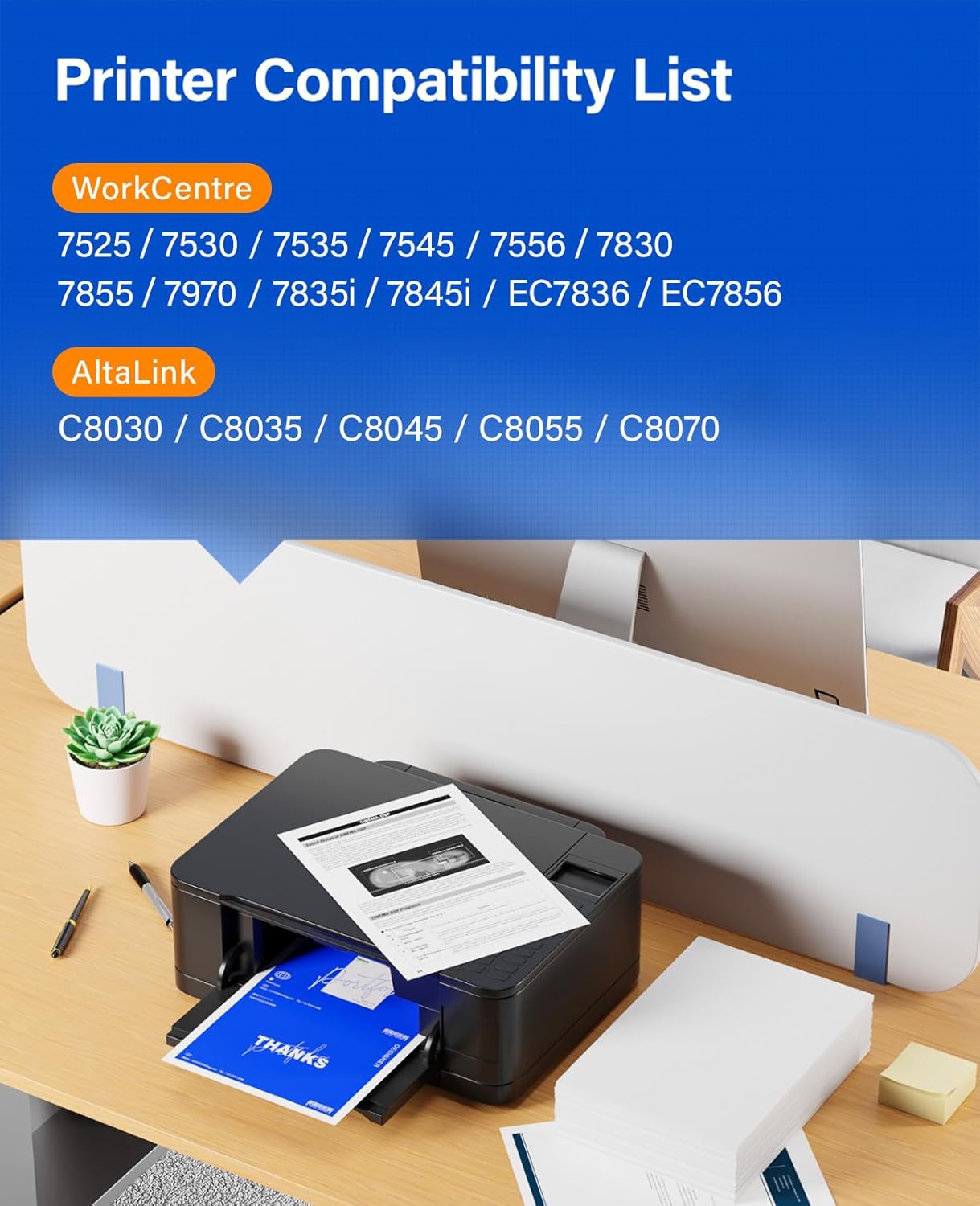 - Compatible Printer: Compatible with Xerox Workcentre 7525, 7530, 7535, 7545, 7556, 7830, 7855, 7970, 7835i, 7845i, EC7836, EC7856, Xerox AltaLink C8030, C8035, C8045, C8055, C8070 Laser Printer.